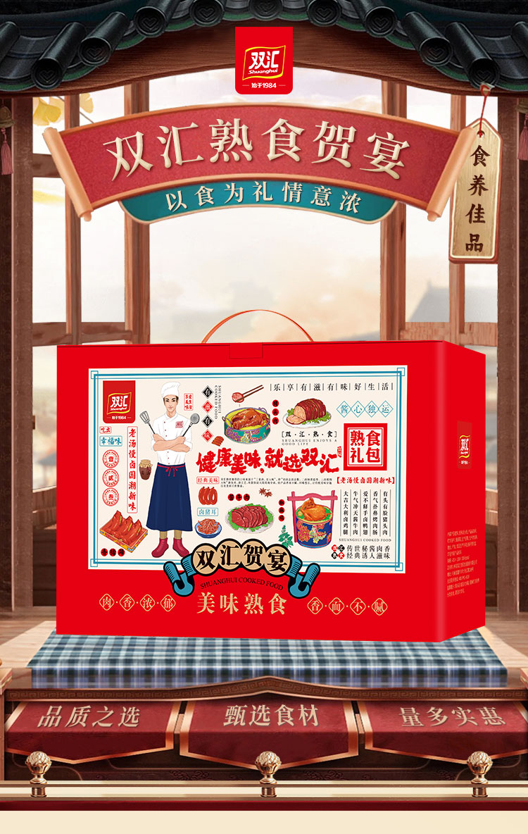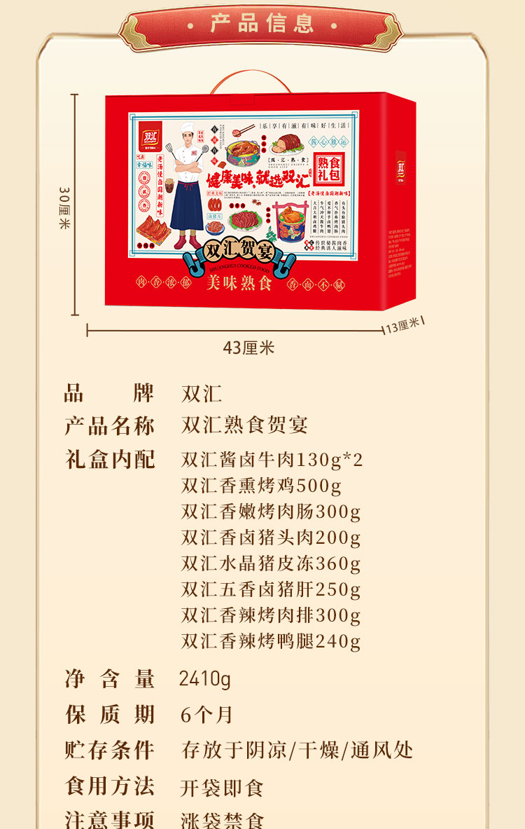 【肉食狂欢】双汇熟食贺宴礼盒2410g!猪头肉、香肠、肘花等,即食美味,懒人下酒菜,过年必备!