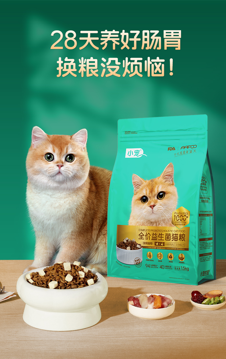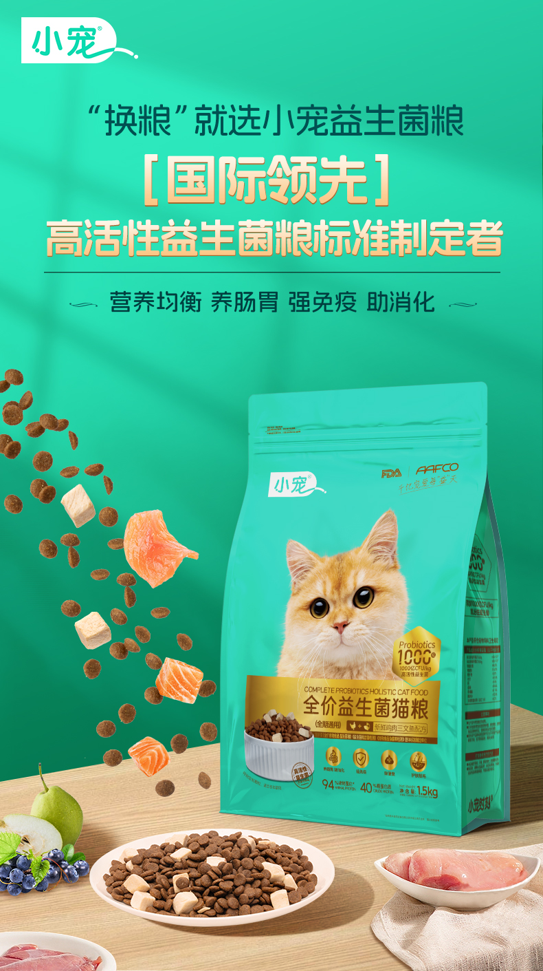 小宠全价益生菌猫粮 新鲜鸡肉三文鱼配方 添加3%冻干鸡肉 1.5kg/袋【日期到:26年7月19日】】