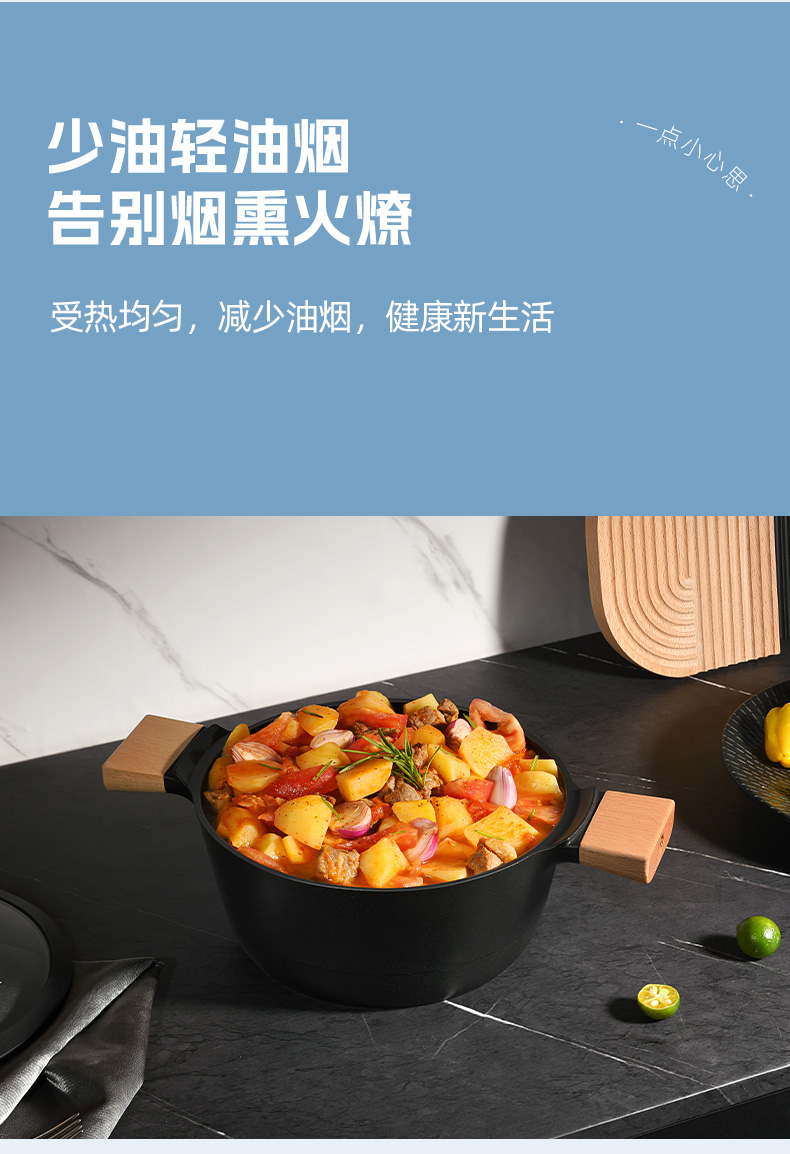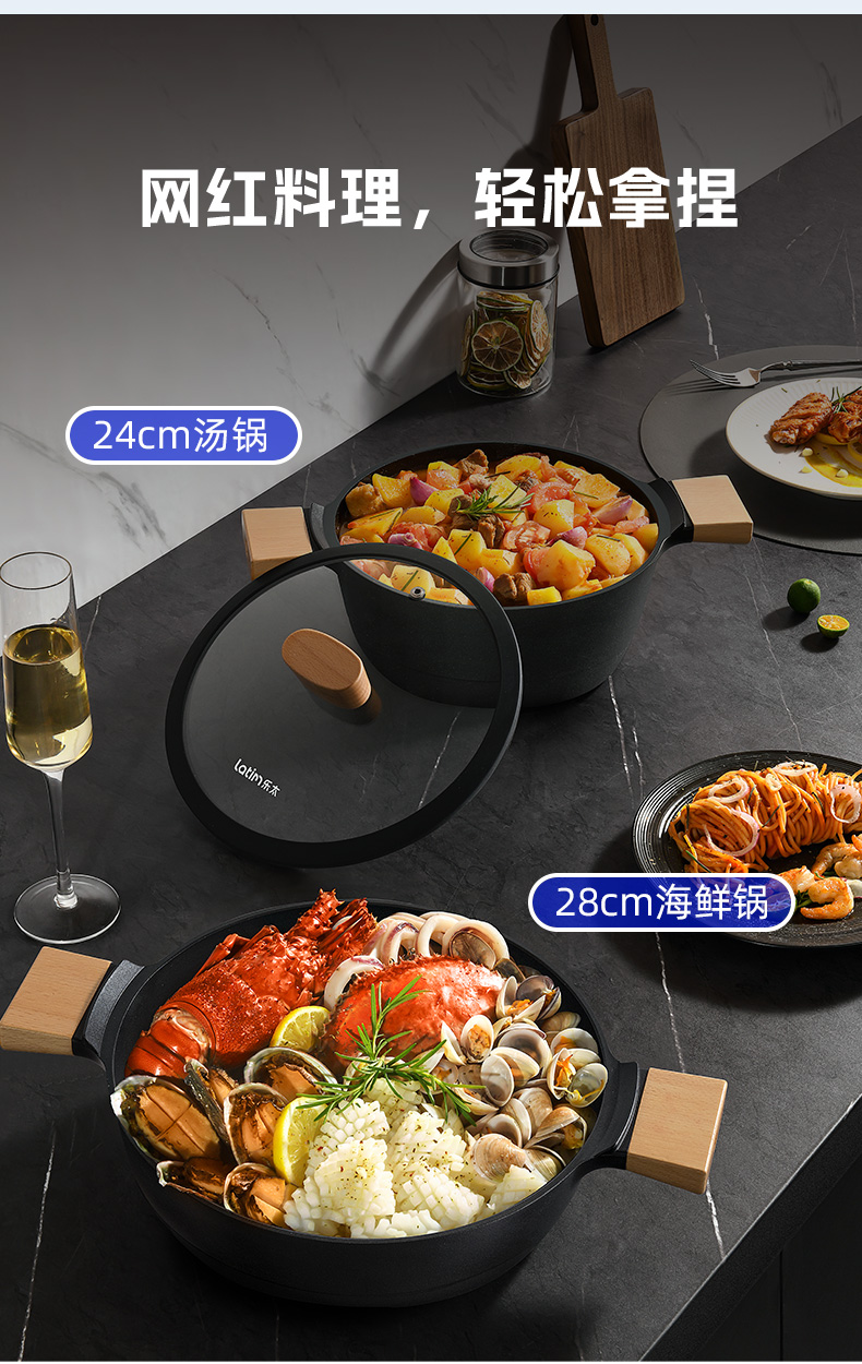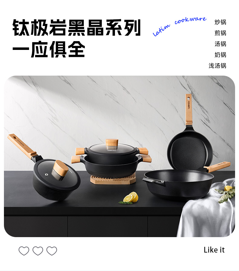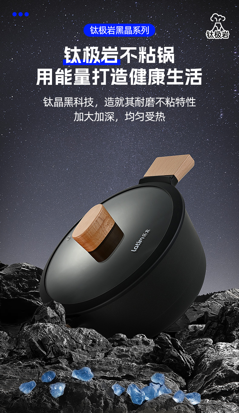 乐太钛级岩黑晶不粘锅 少油烟家用汤锅耐磨电磁炉通用 24cm+压缩海绵