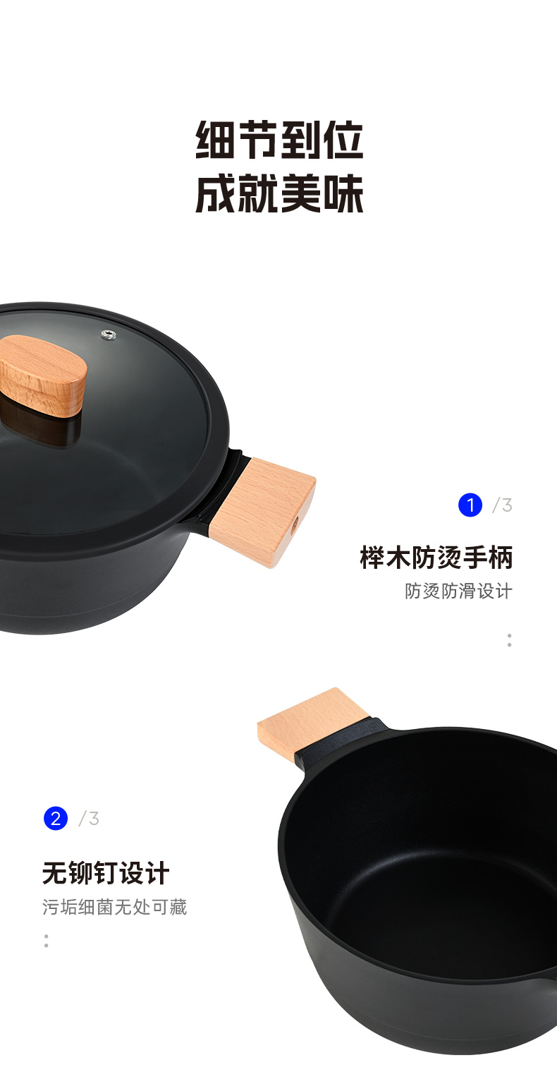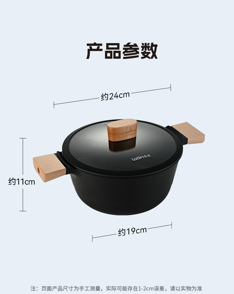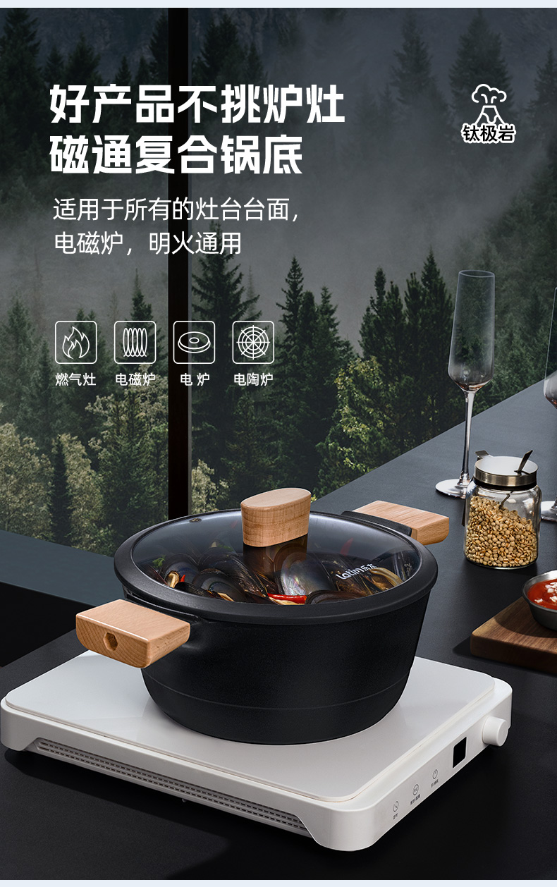 乐太钛级岩黑晶不粘锅 少油烟家用汤锅耐磨电磁炉通用 24cm+压缩海绵