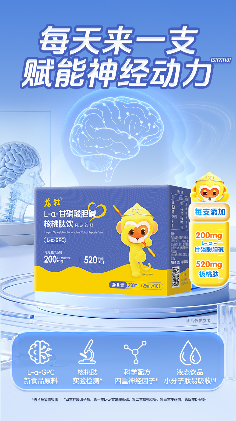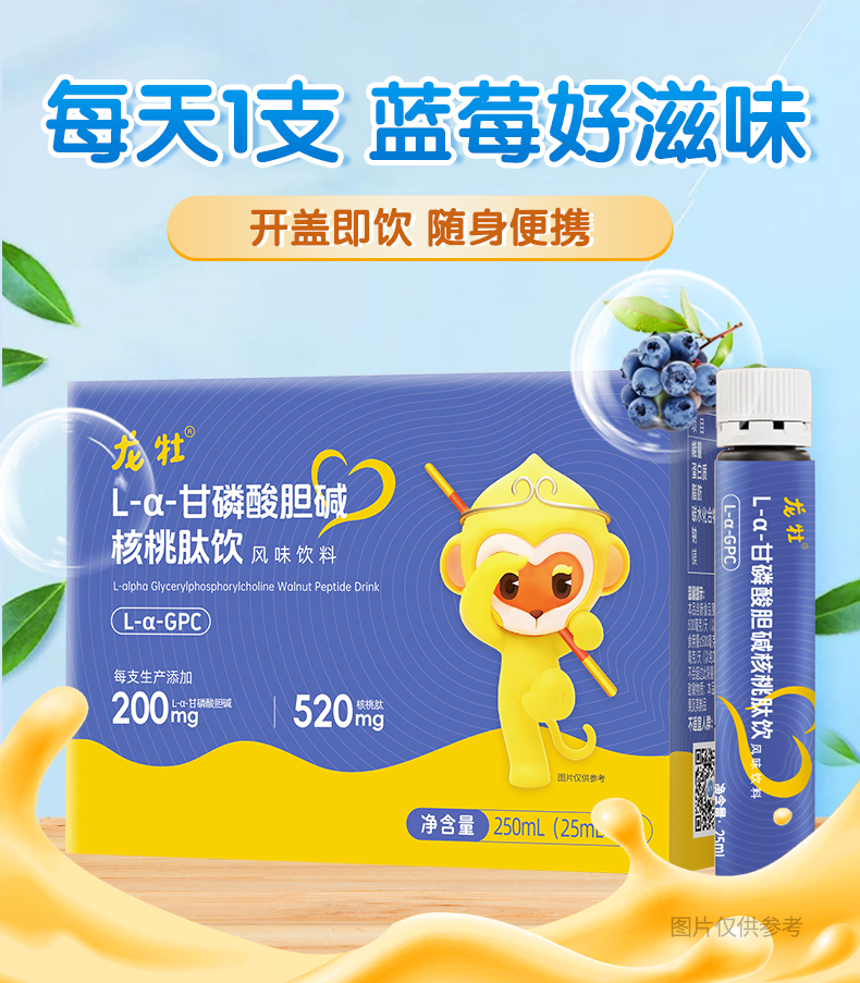 龙牡GPC L-α-甘磷酸胆碱+核桃肽+学生青少年DHA藻油,三岁以上可喝,小分子肽,易吸收