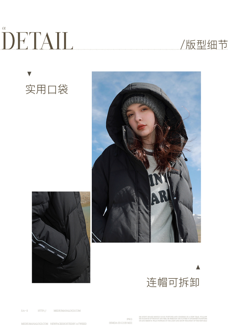 【90白鹅绒】三彩2025冬季新款羽绒服长款保暖鹅绒服外套宽松M