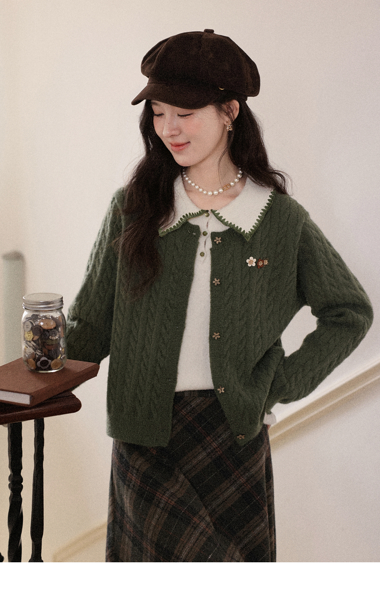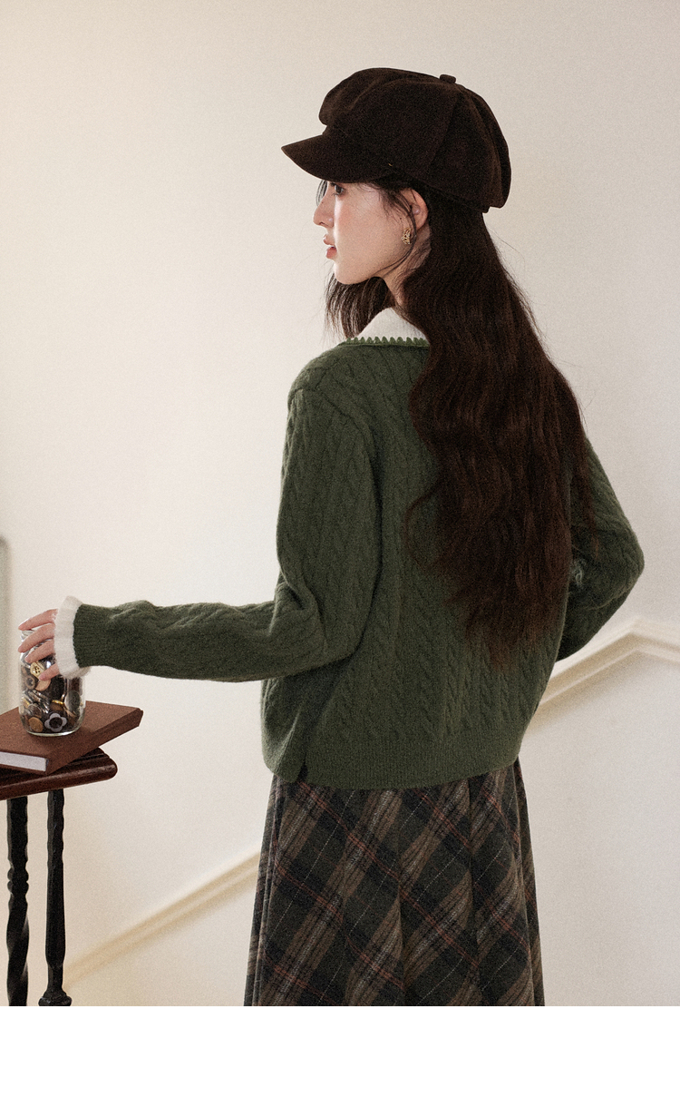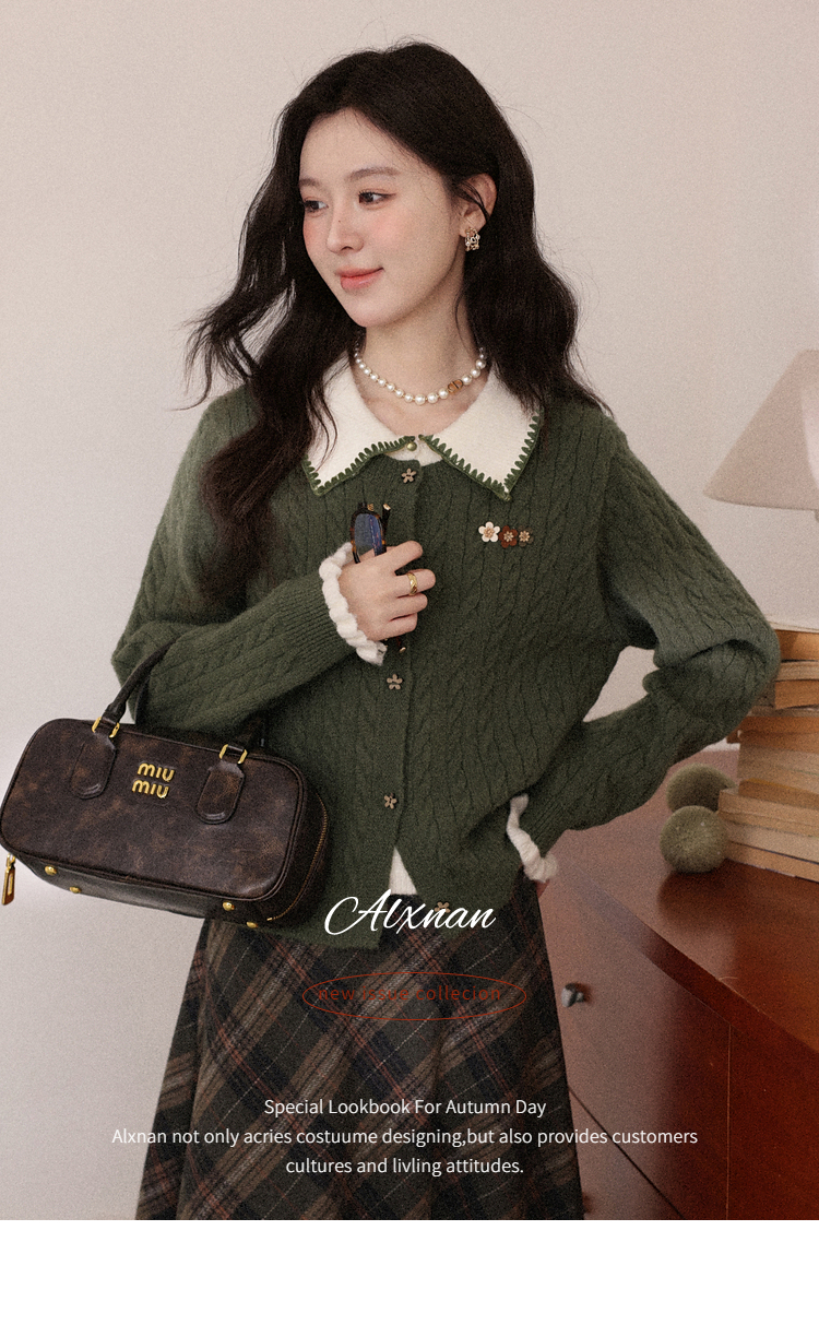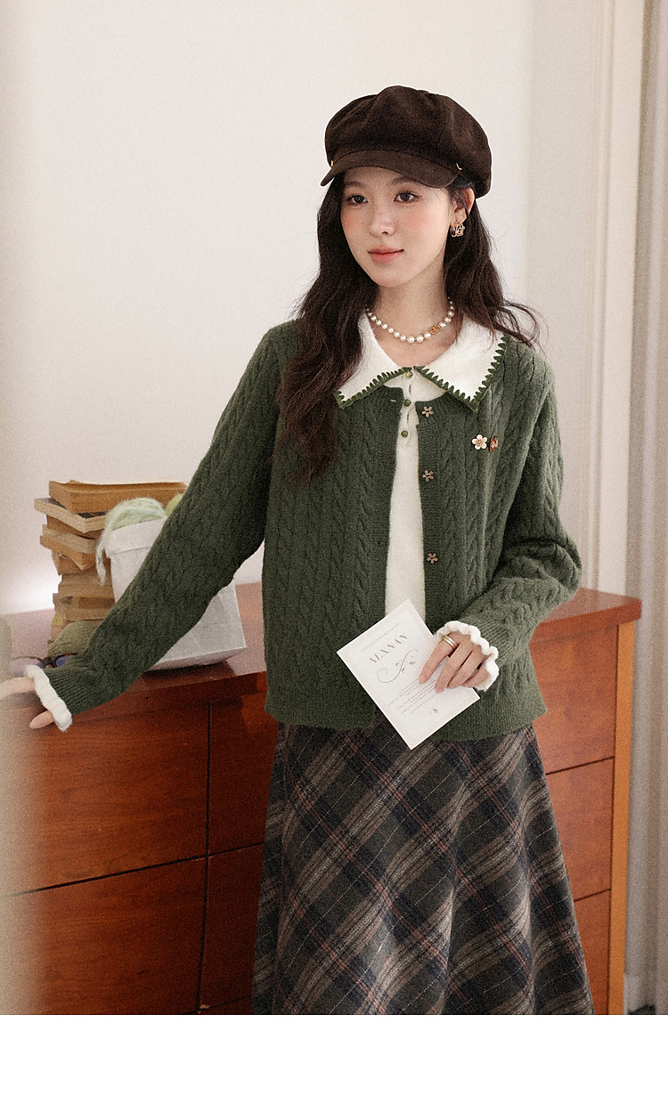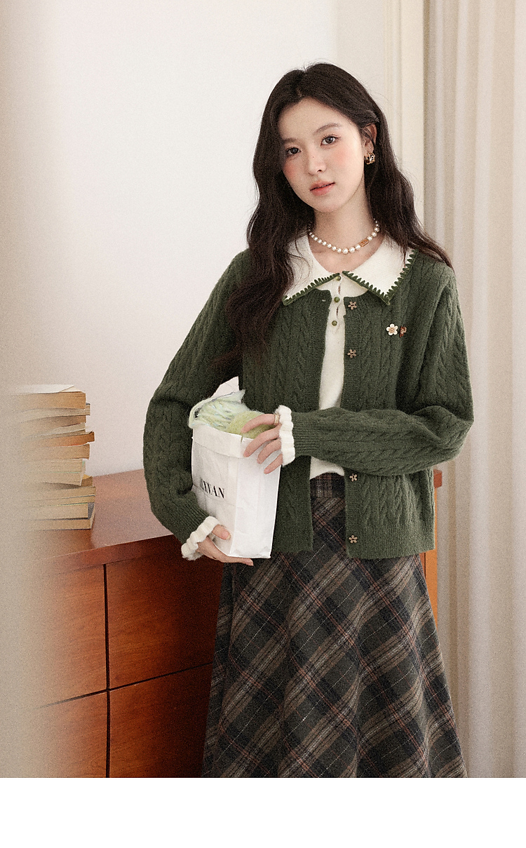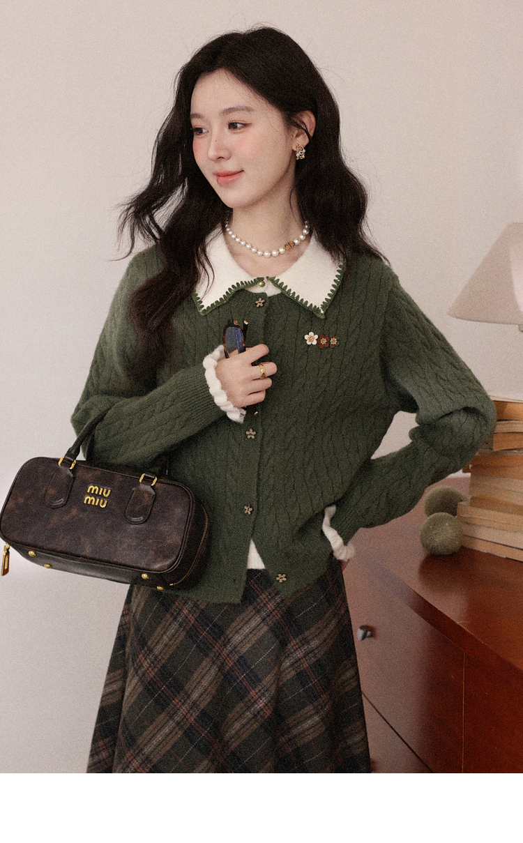 鹿向南「馥郁青藤」绿色假两件设计感毛衣女秋冬新款长袖针织开衫