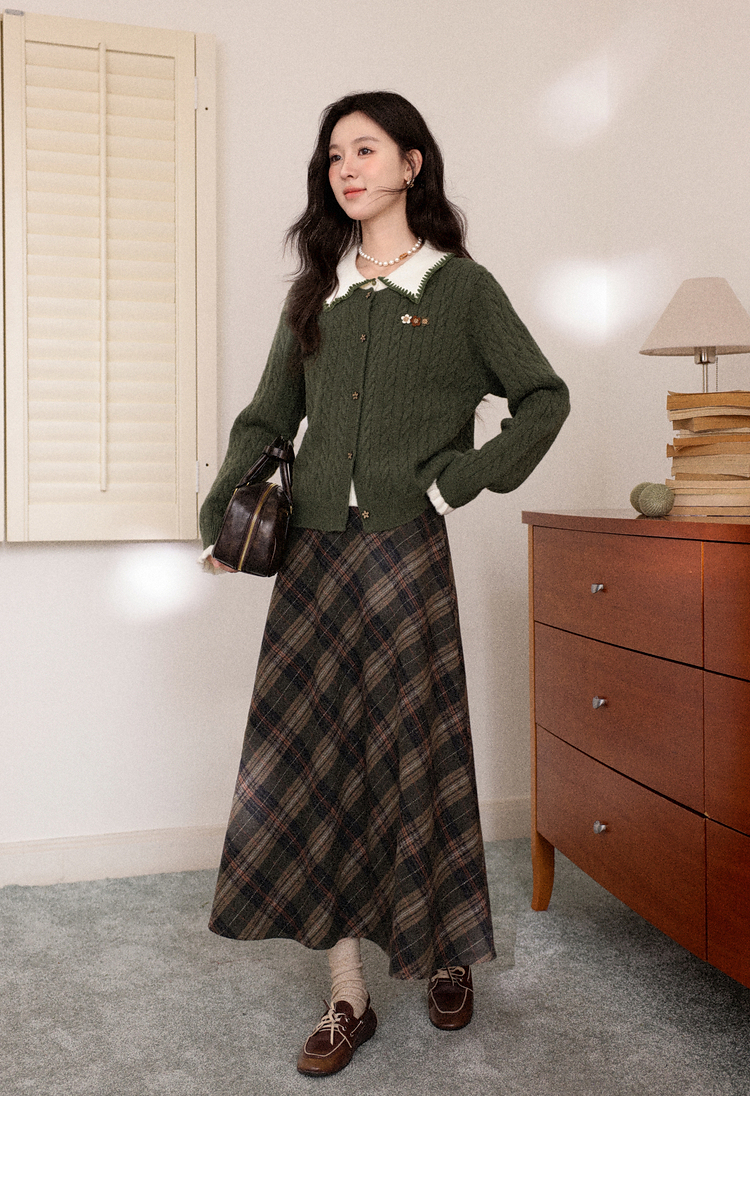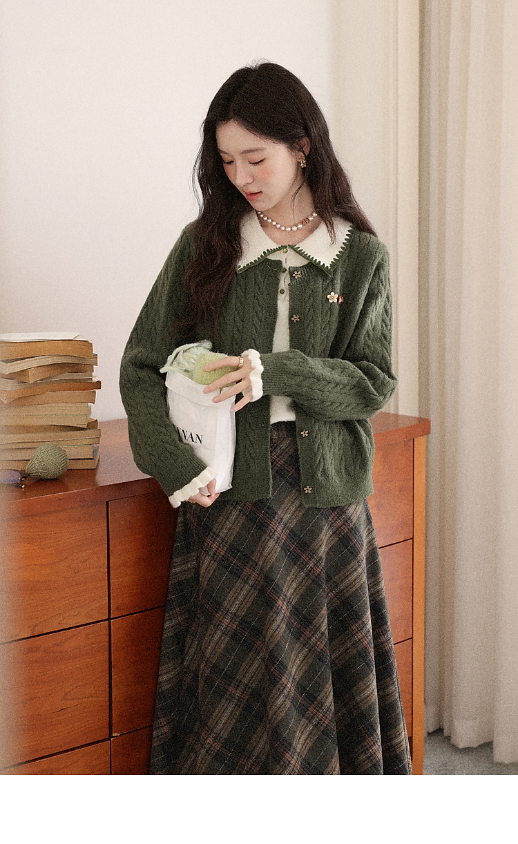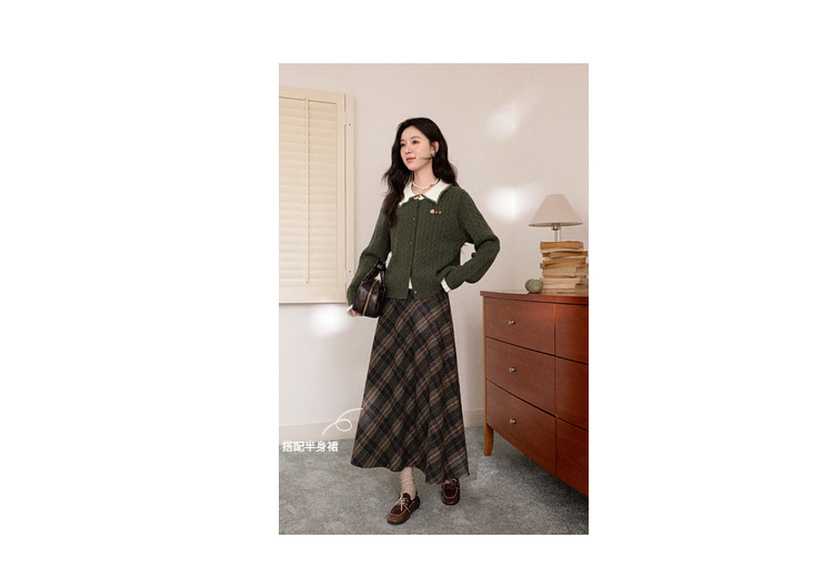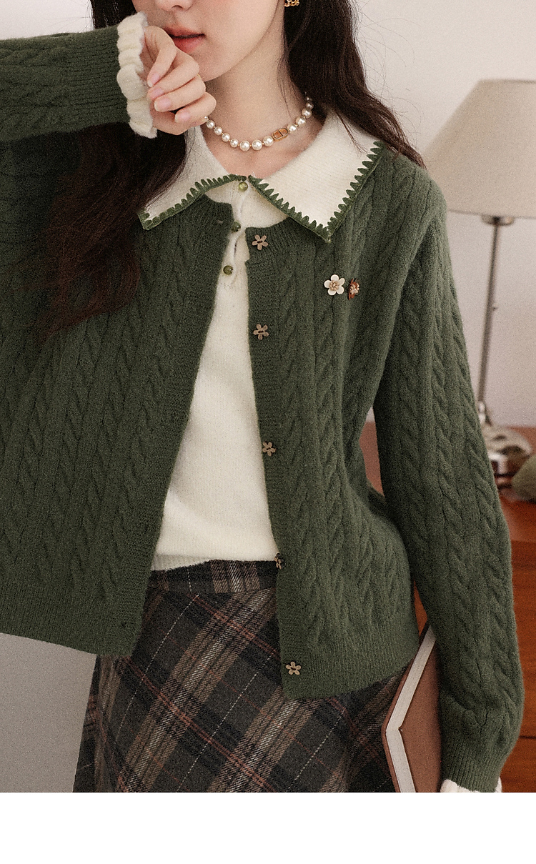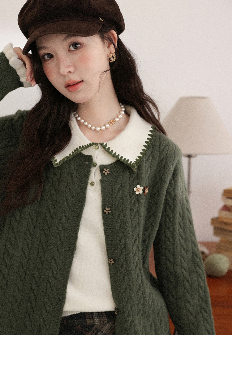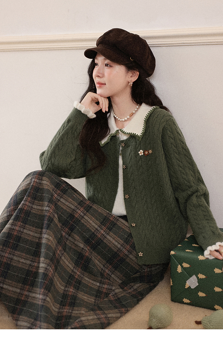 鹿向南「馥郁青藤」绿色假两件设计感毛衣女秋冬新款长袖针织开衫