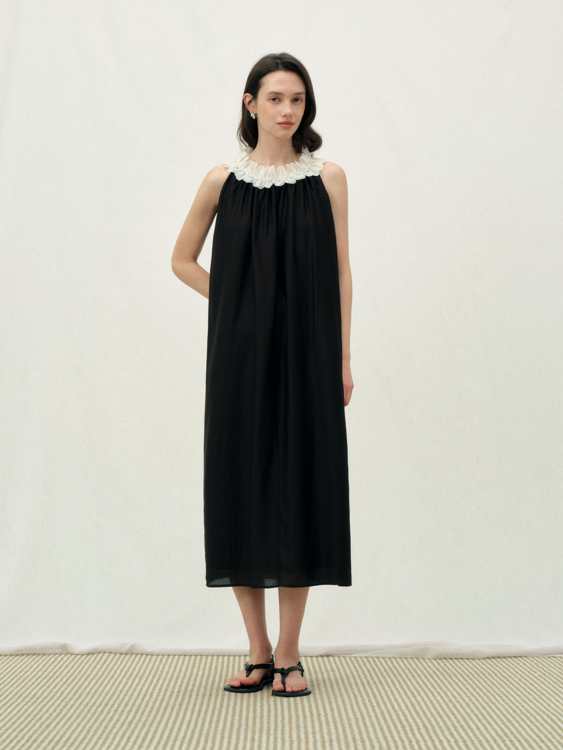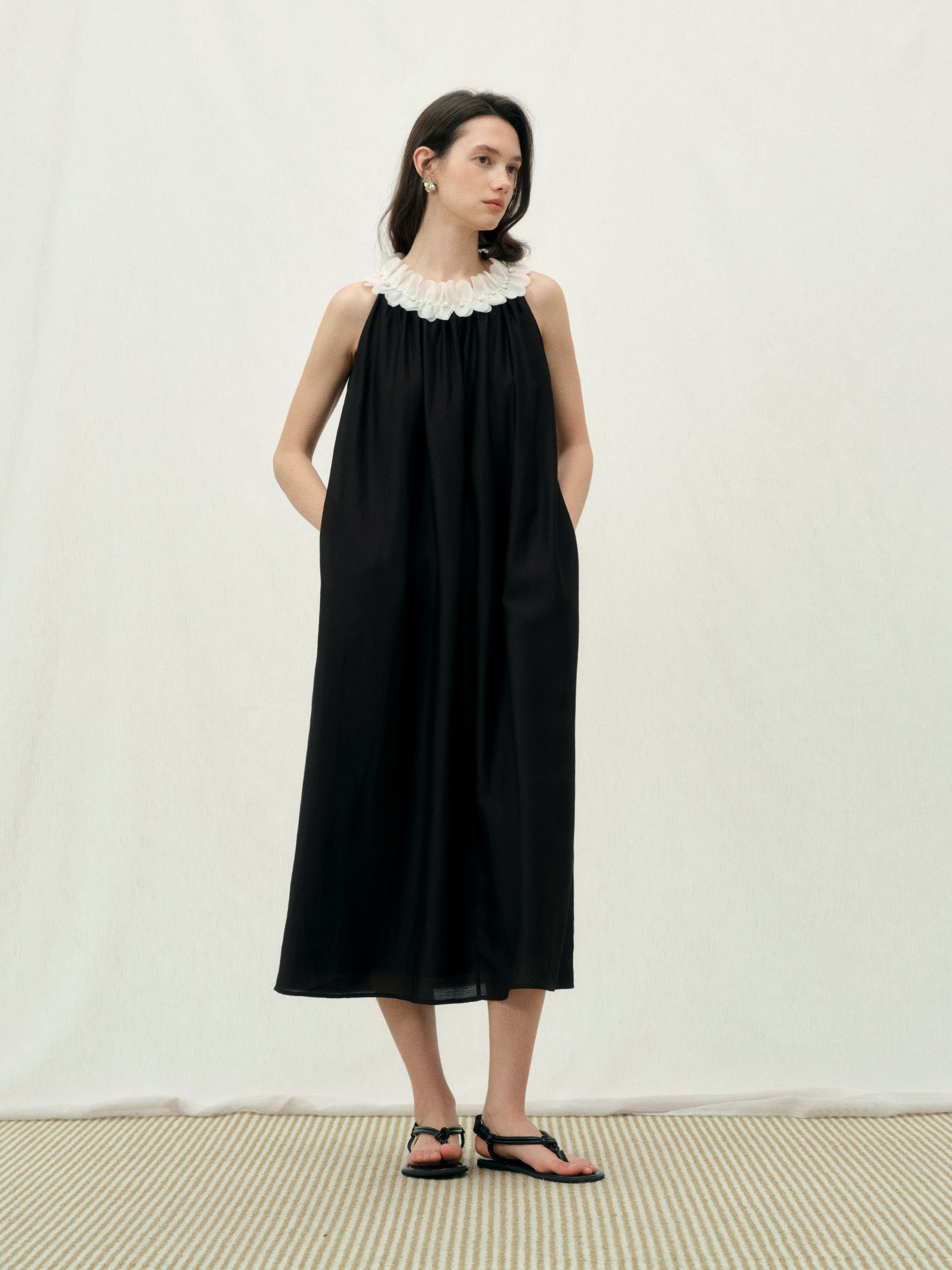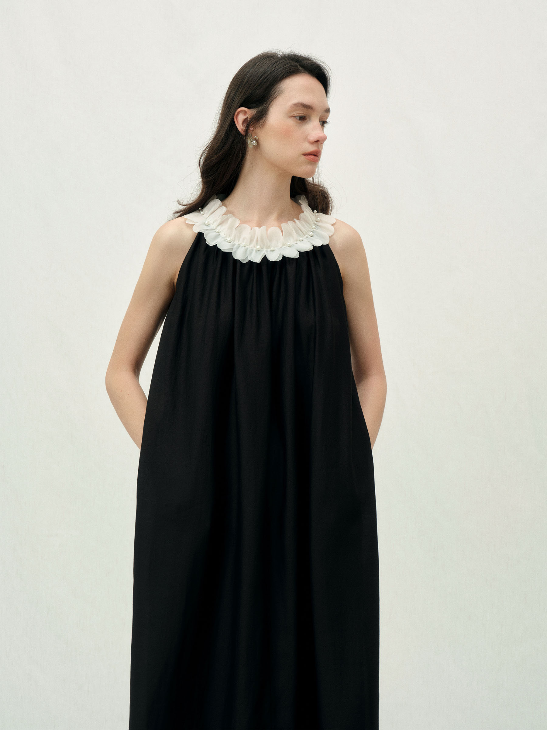 ForPoem 26/SS 原创设计珍珠花瓣连衣裙宽松无袖抽褶层次感裙子女