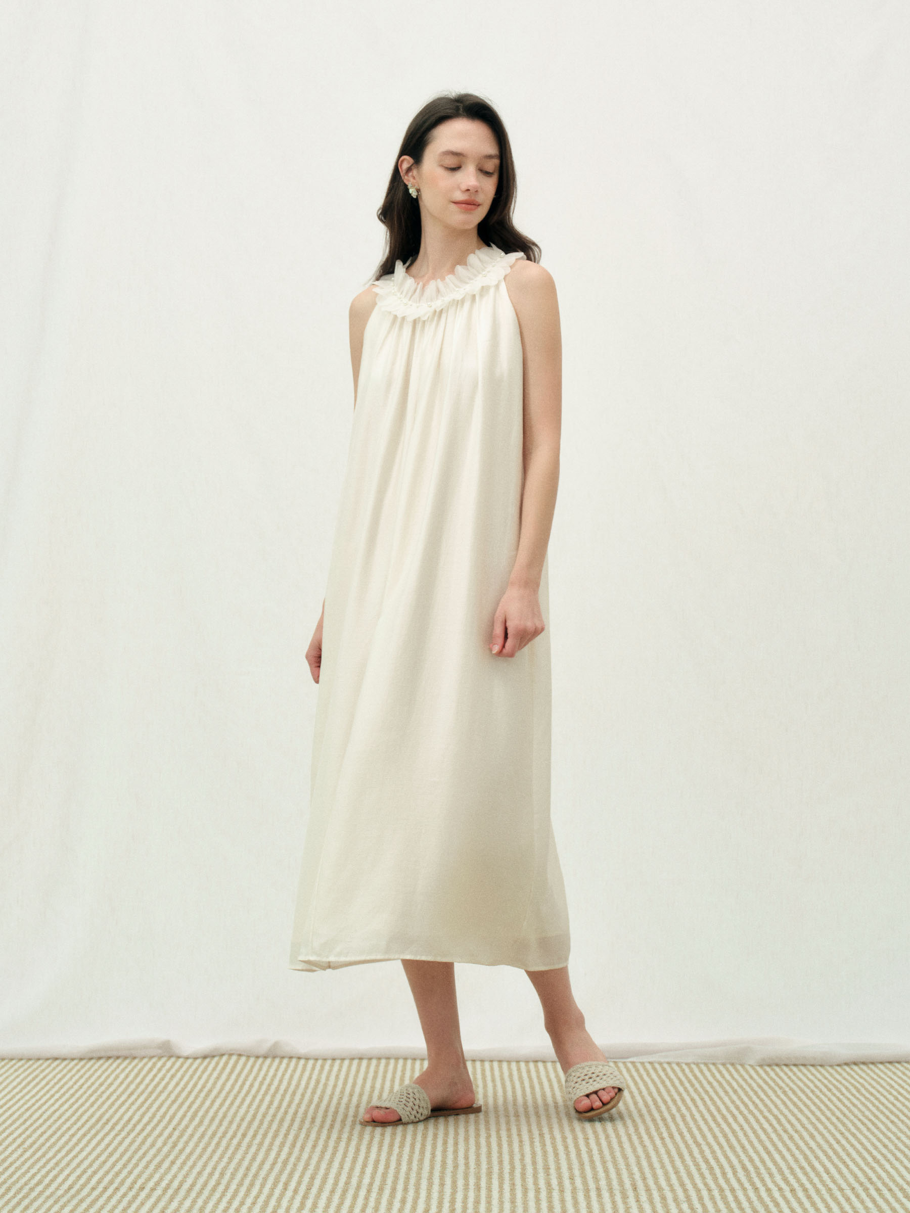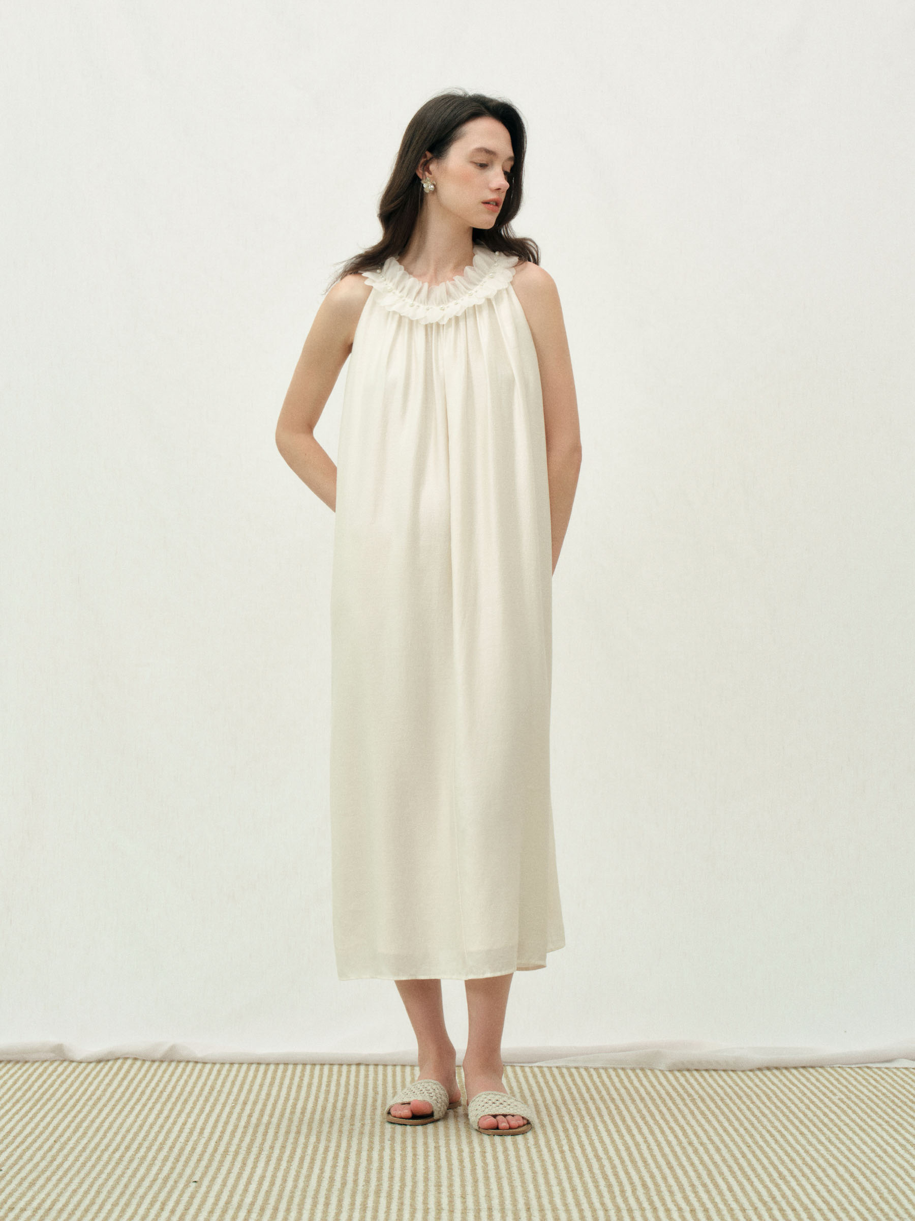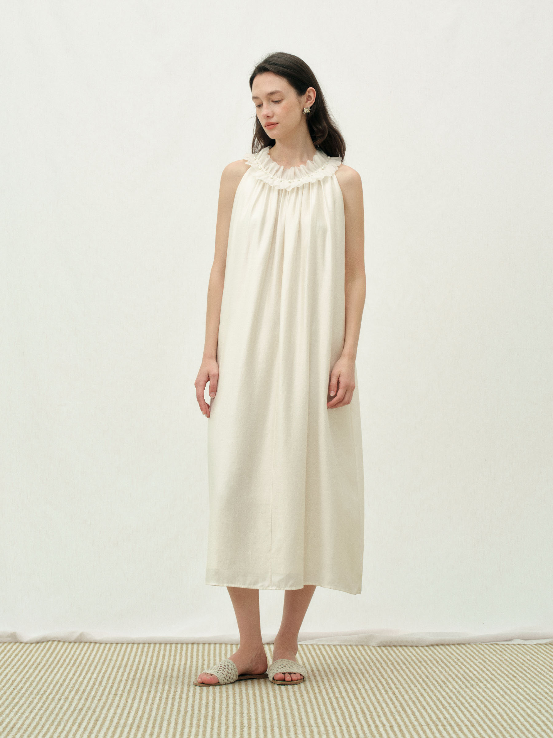 ForPoem 26/SS 原创设计珍珠花瓣连衣裙宽松无袖抽褶层次感裙子女