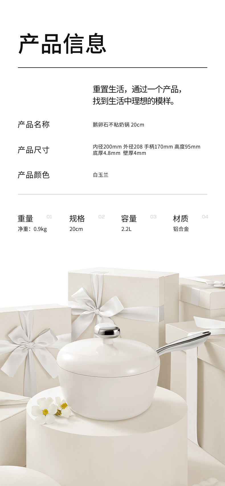 VELOSAN温仑山鹅卵石不粘奶锅20cmVE007-白