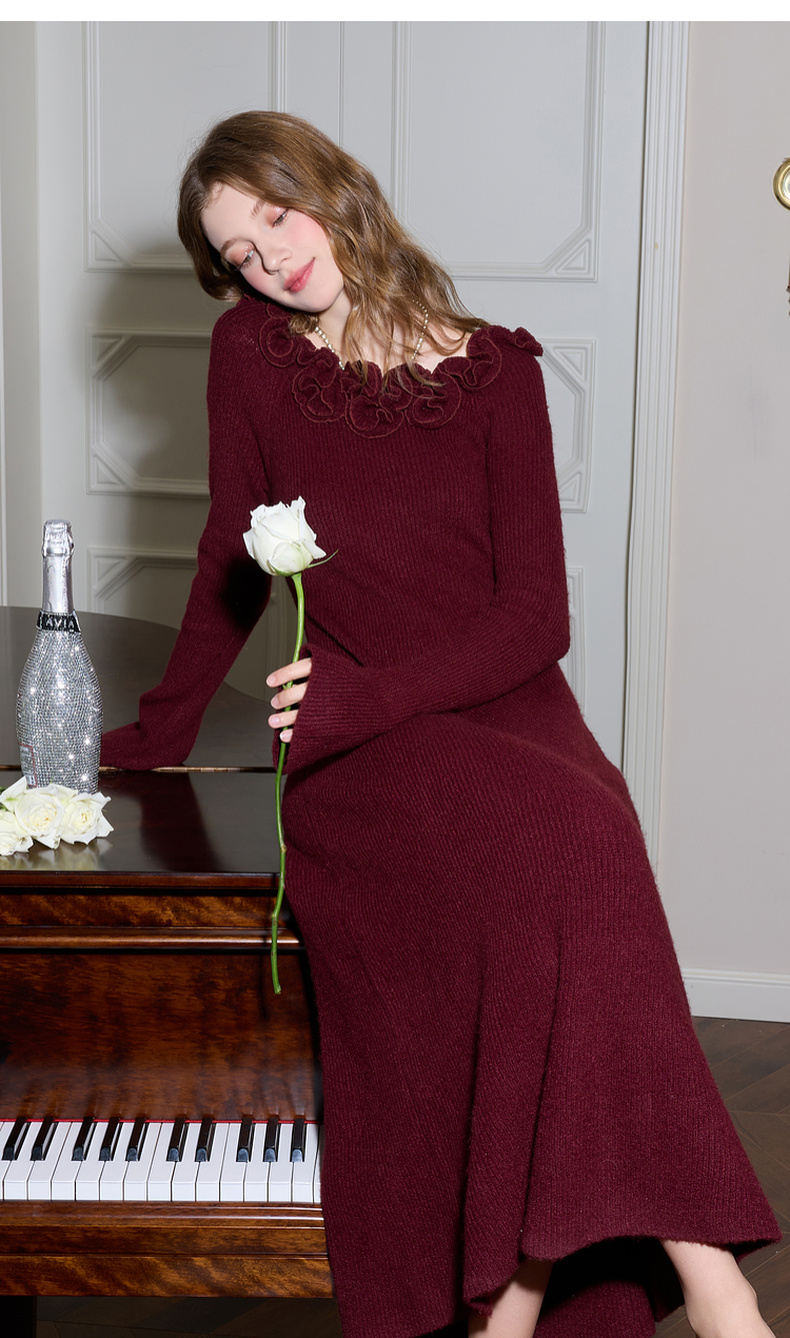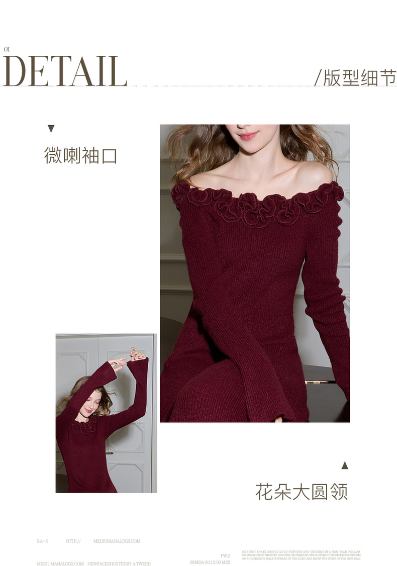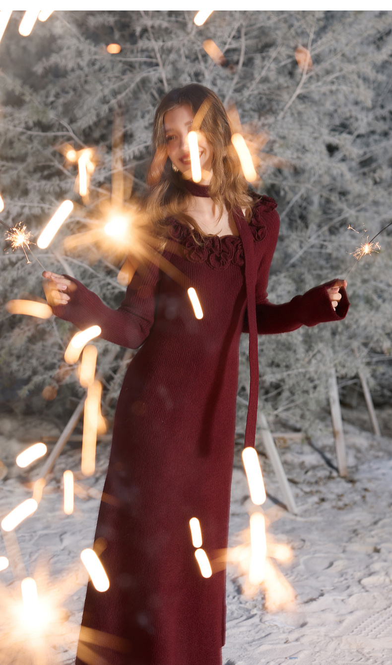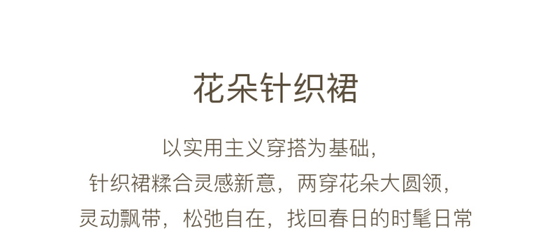 三彩2026春季新款气质连衣裙复古针织裙花朵A字裙长裙优雅M
