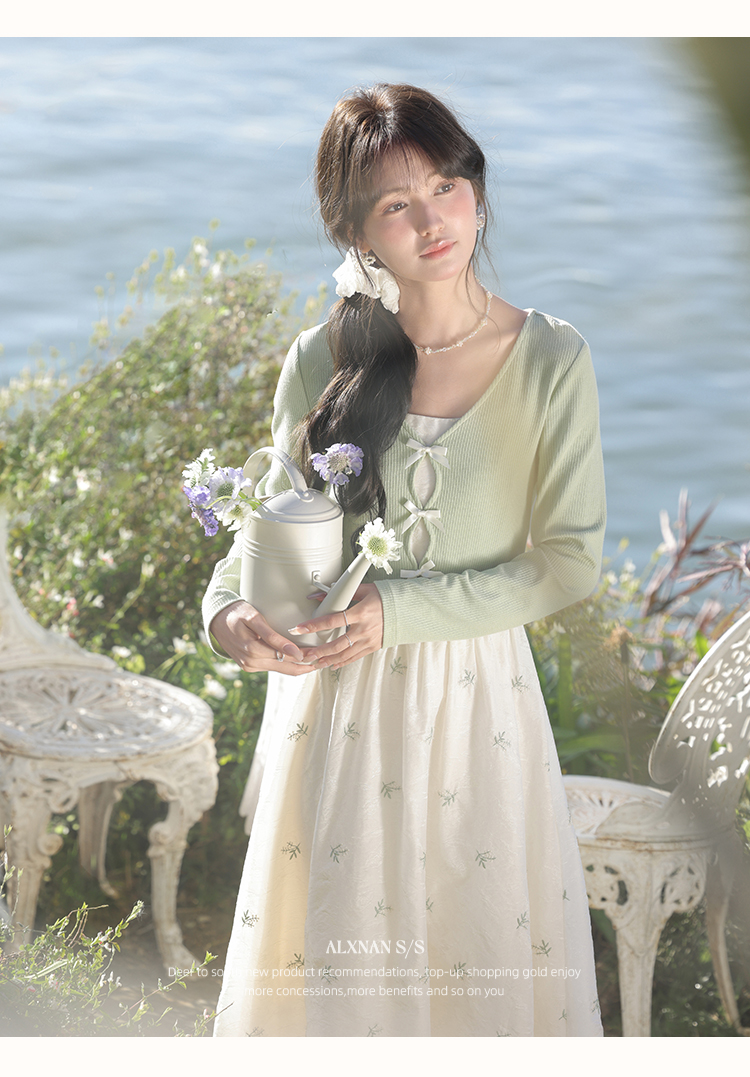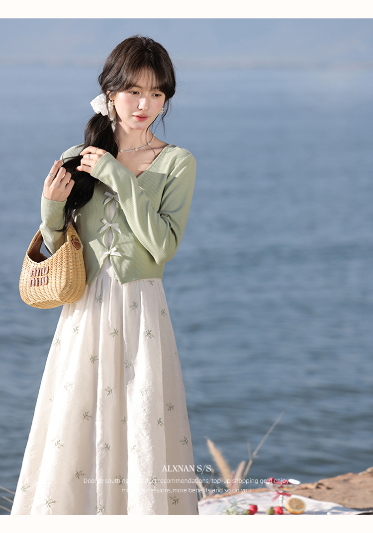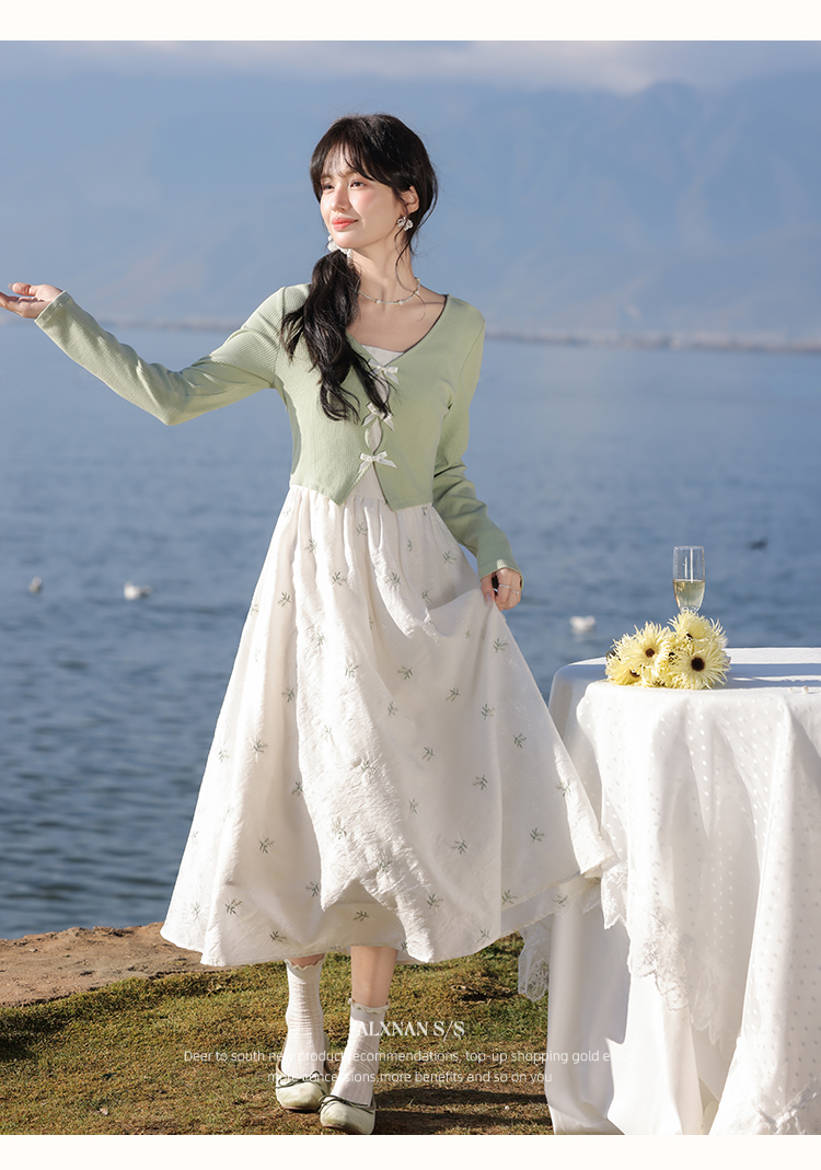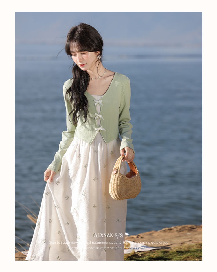 【6折秒杀】鹿向南「青绿烟雨」假两件连衣裙L528100