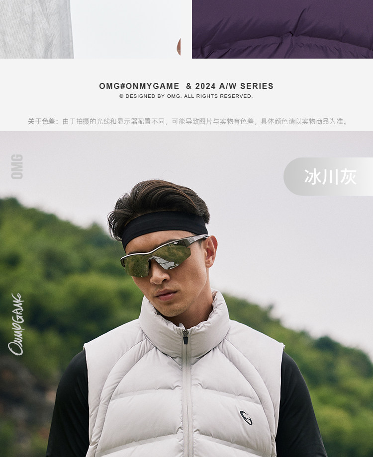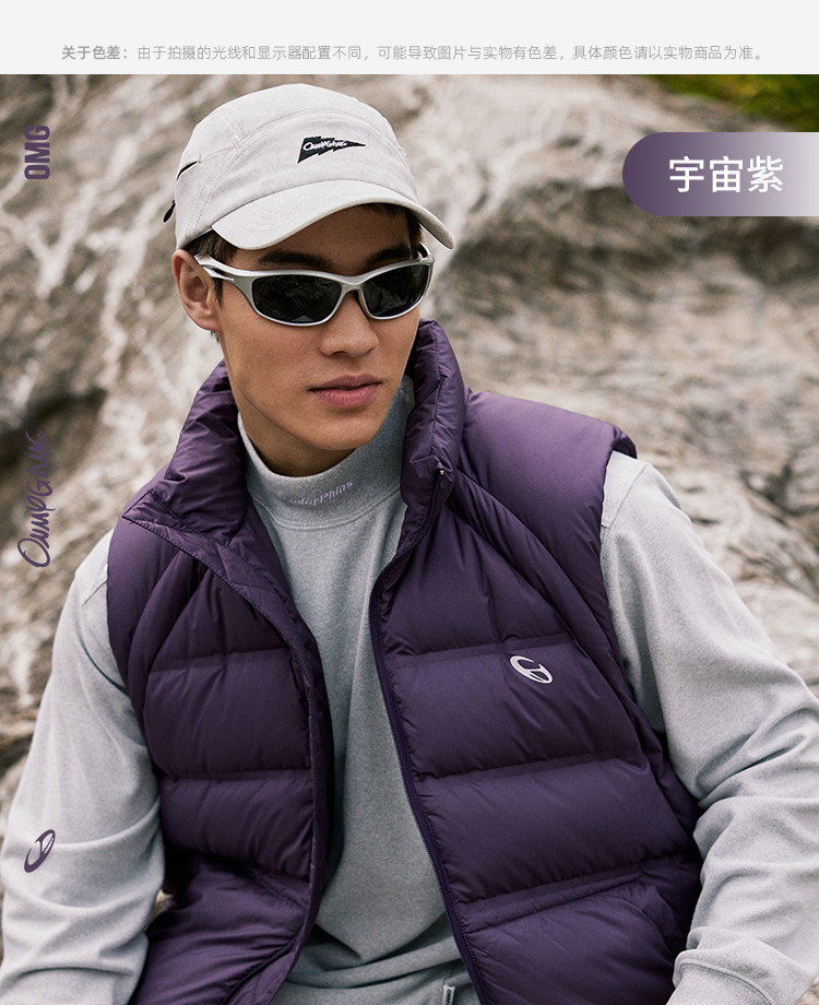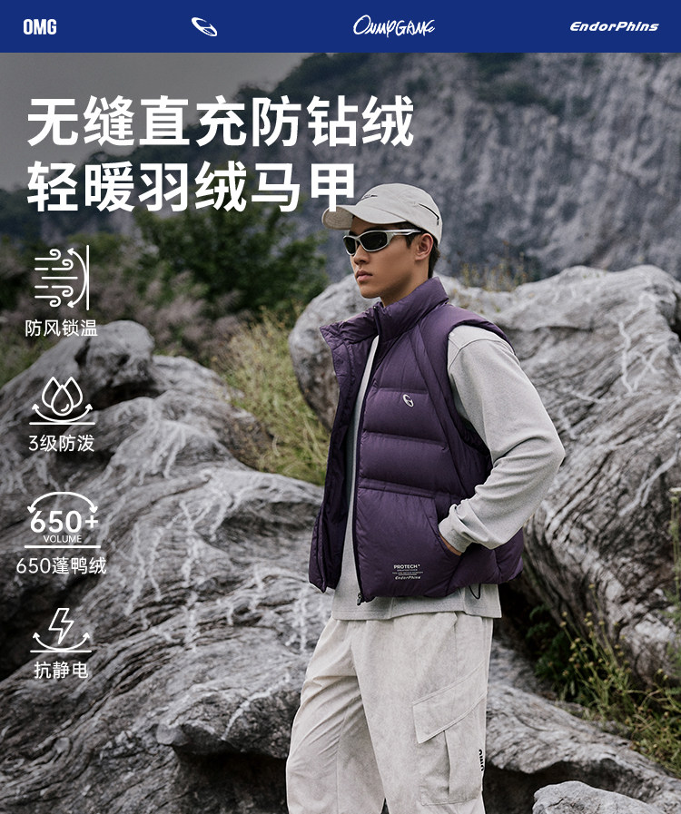OMG运动 【90鸭绒】外穿冬季保暖羽绒马甲男立领加厚羽绒服户外
