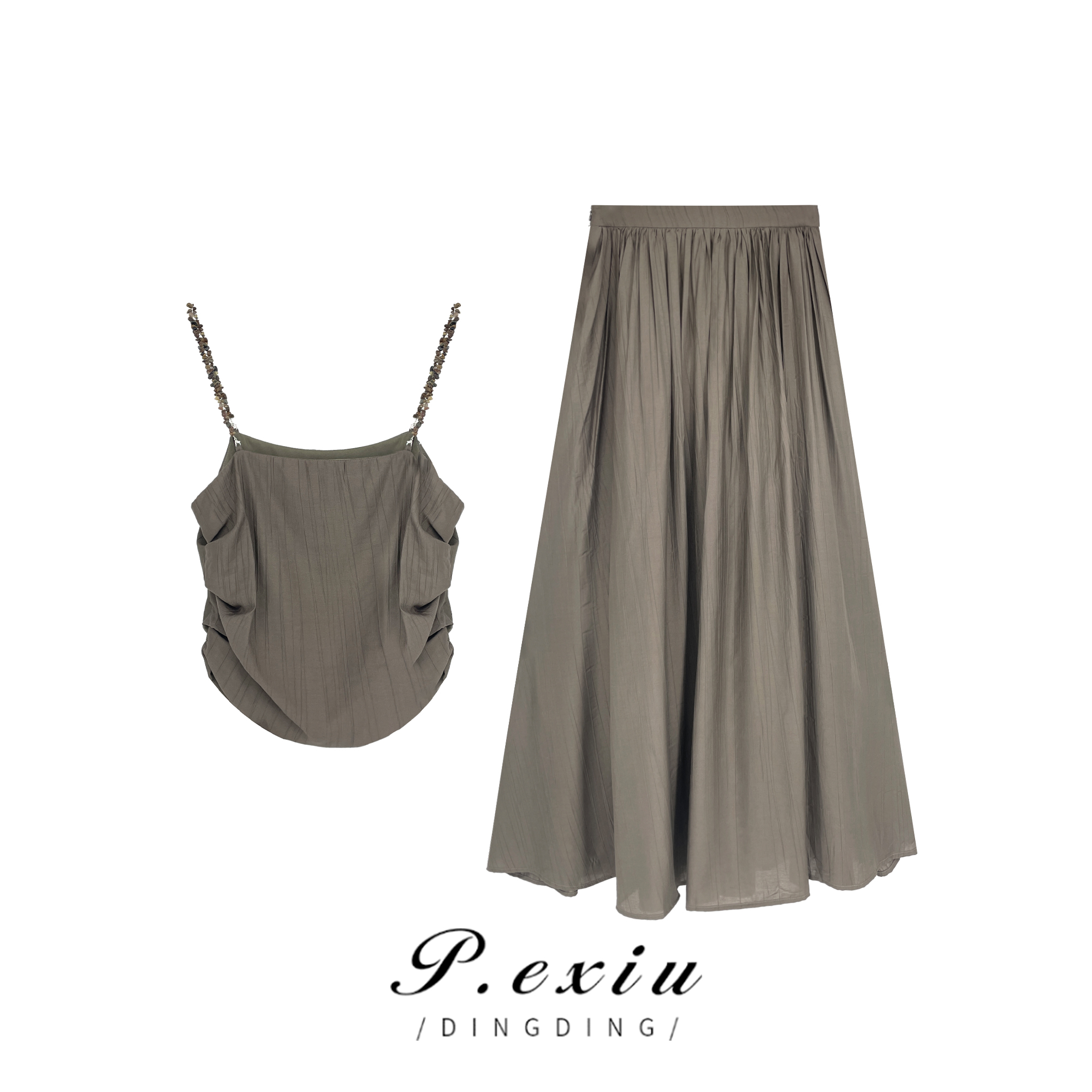 03-2潘依绣丁丁宠粉PanYiXiu/潘依绣夏季新款时尚减龄吊带背心气质半身裙套装 K5934