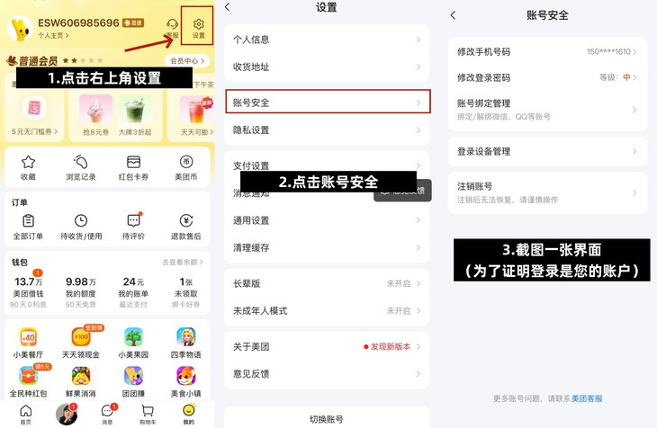 ▸截图账户安全位置