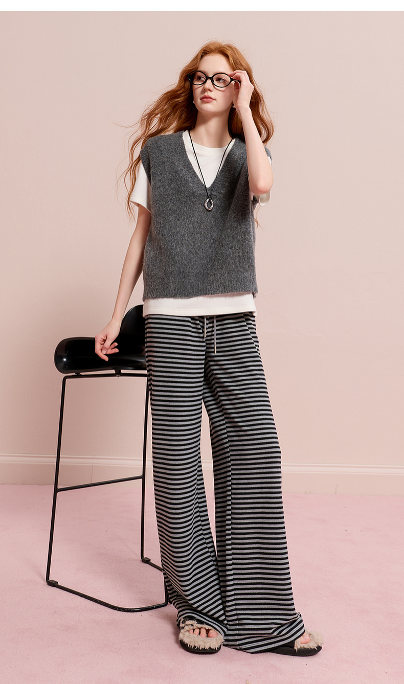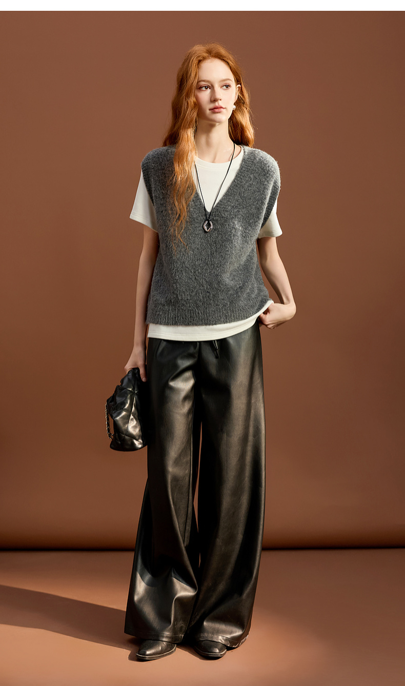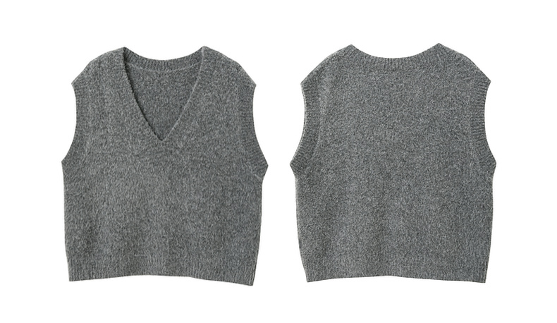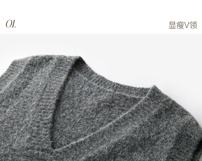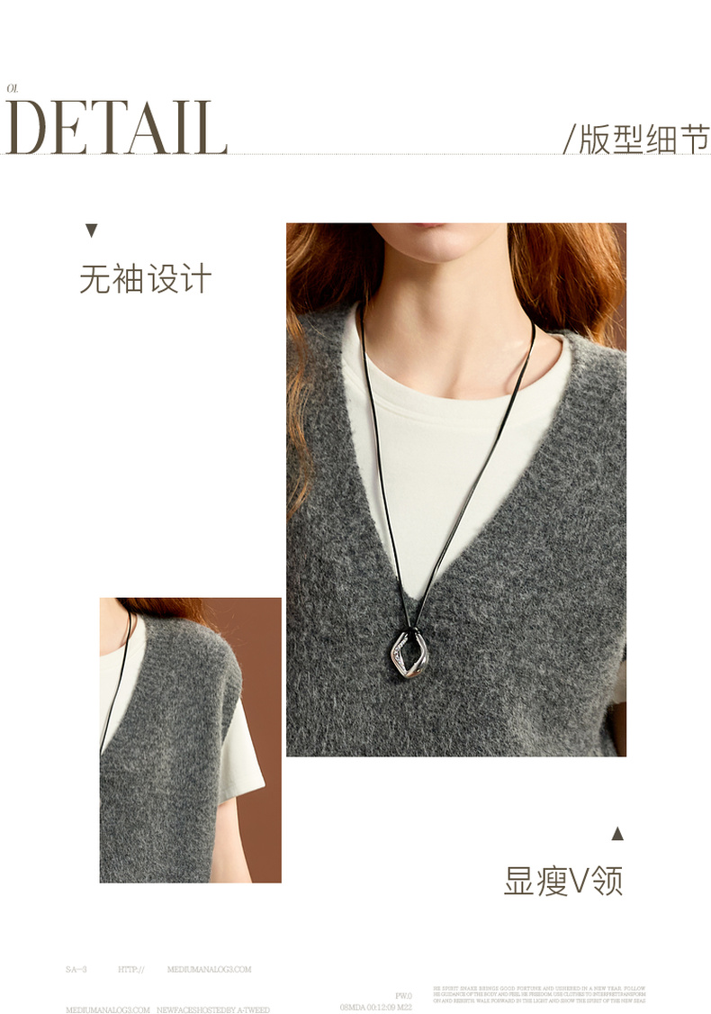 三彩2025冬季新款宽松V领针织衫无袖叠穿马甲背心套头衫上衣M