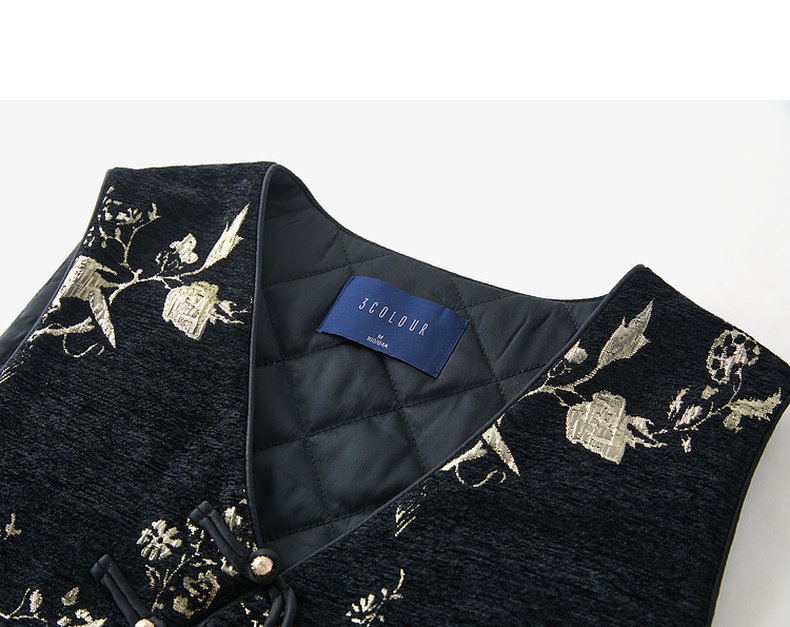 三彩【鎏金浮梦】2025冬季新款新中式马甲V领盘扣提花无袖棉服女