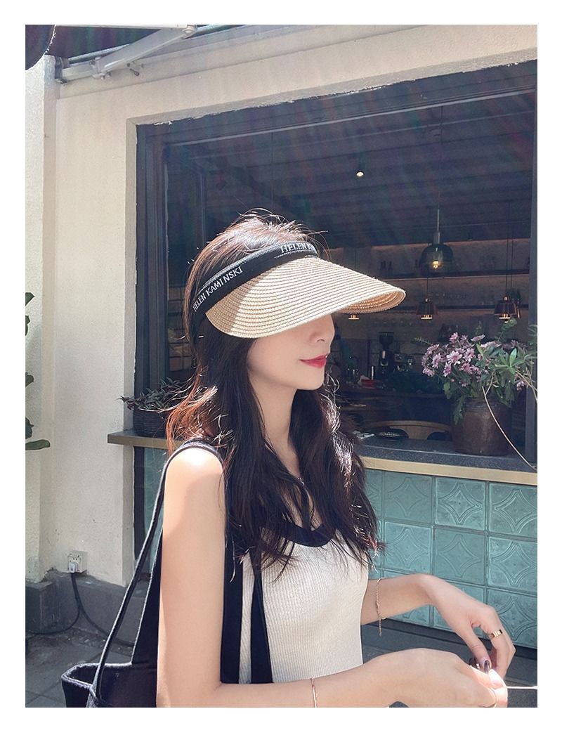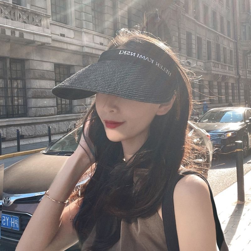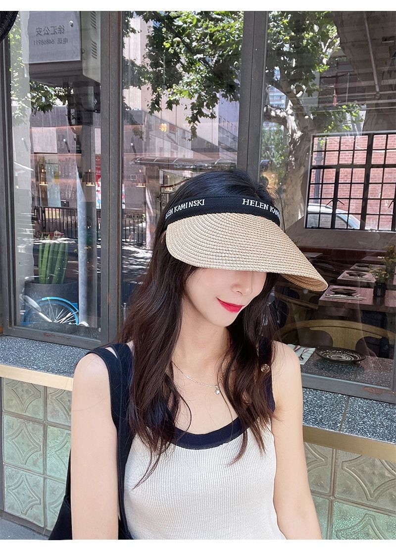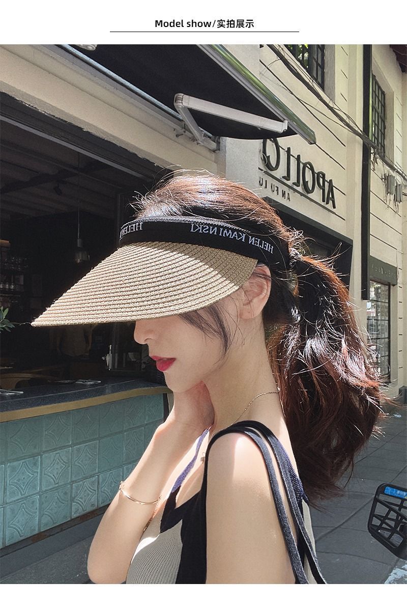 2023夏季ins草编空顶鸭舌帽子女 户外百搭沙滩大檐防晒发箍草 帽遮阳帽