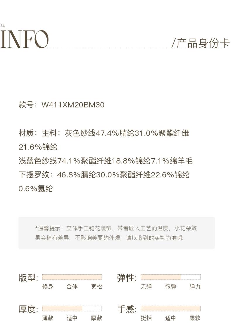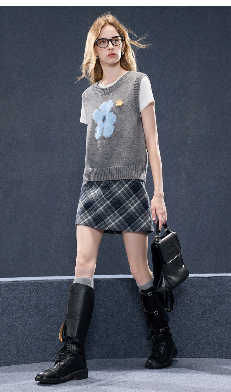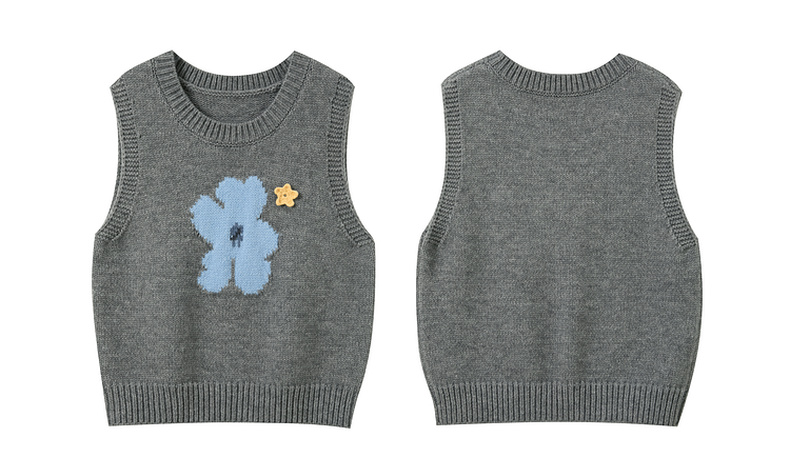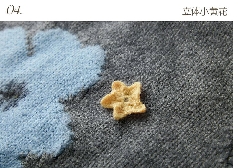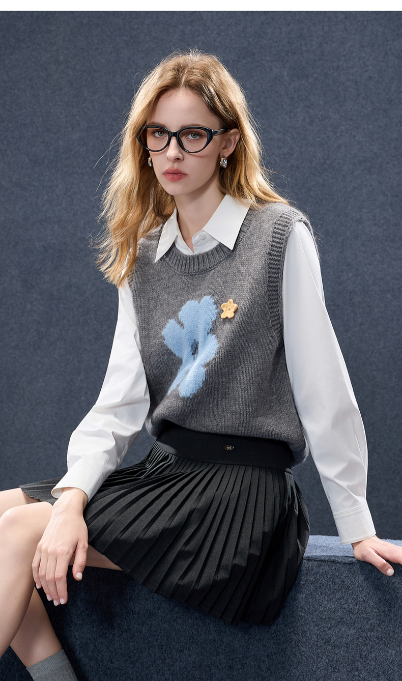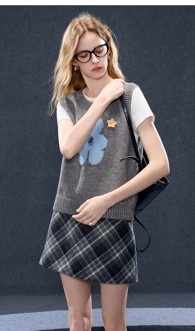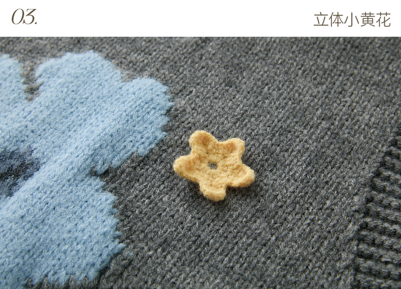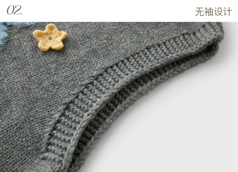 三彩2026春季新款针织马甲花朵圆领无袖毛衫宽松叠穿M