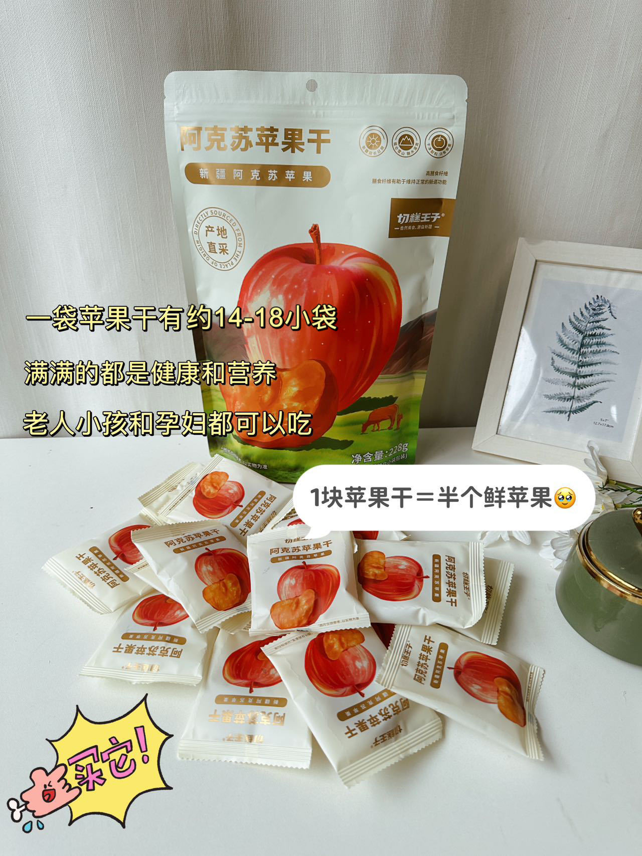 【切糕王子阿克苏苹果干】鲜食苹果干,原料只有阿克苏苹果!其它没了 ✅半个鲜苹果=1块苹果干 ✅一箱约等于13个鲜苹果