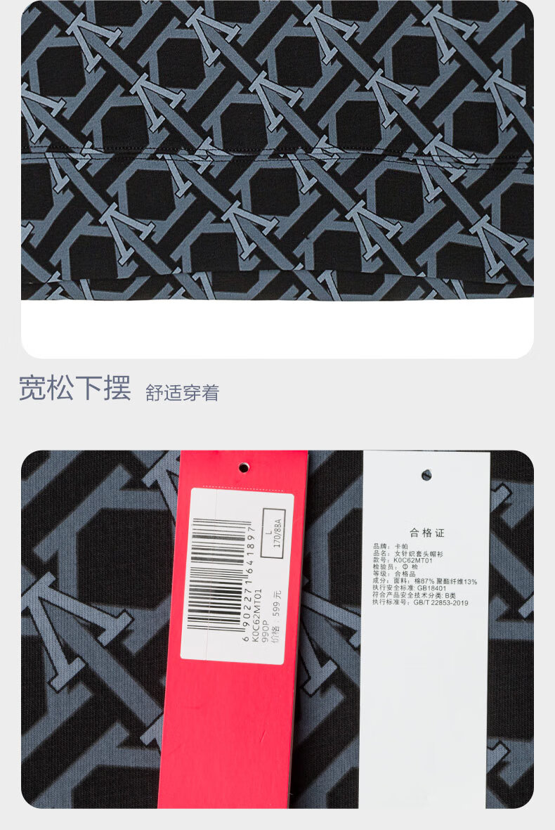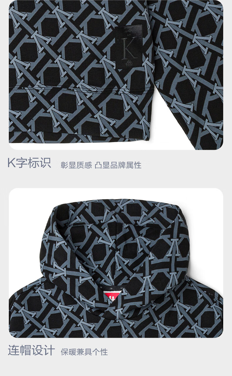 卡帕(Kappa) Kappa卡帕套头帽衫2022新款女满印运动卫衣休闲长袖外套K0C62MT01