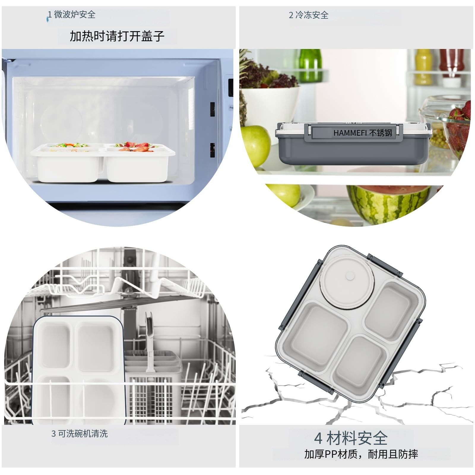FDA认证 美国沃尔玛 HANMFEI 便当盒 优质食品级PP材质 4分隔密封不串味饭盒 1500ml