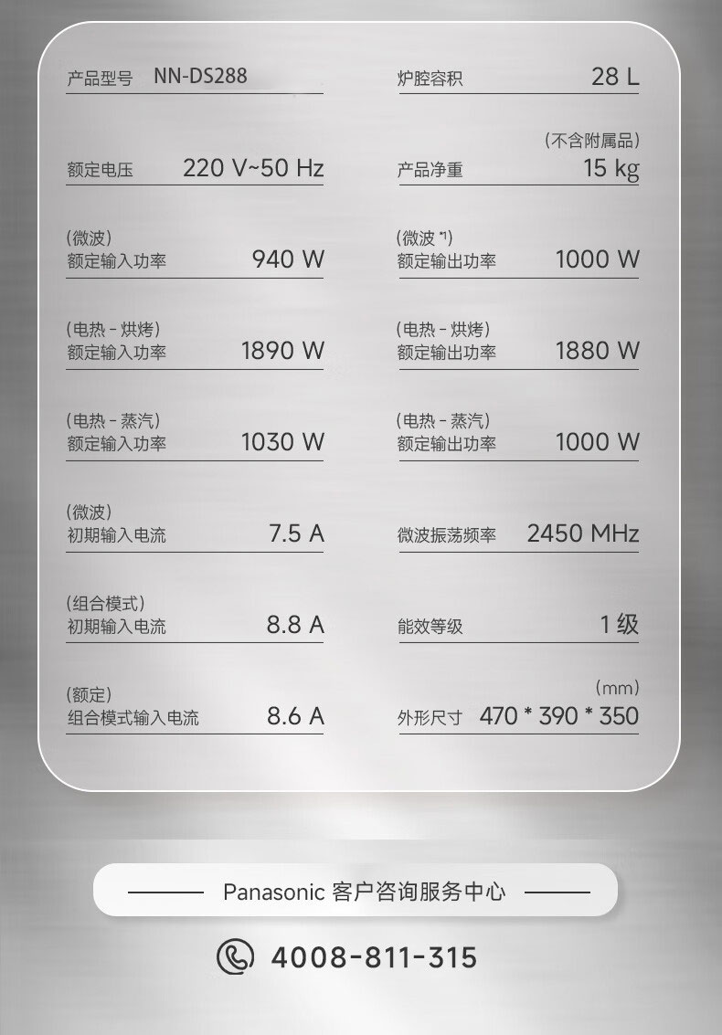 松下(Panasonic)家用松下微蒸烤一体机NN-DS288QXPE_qb
