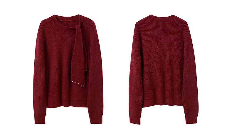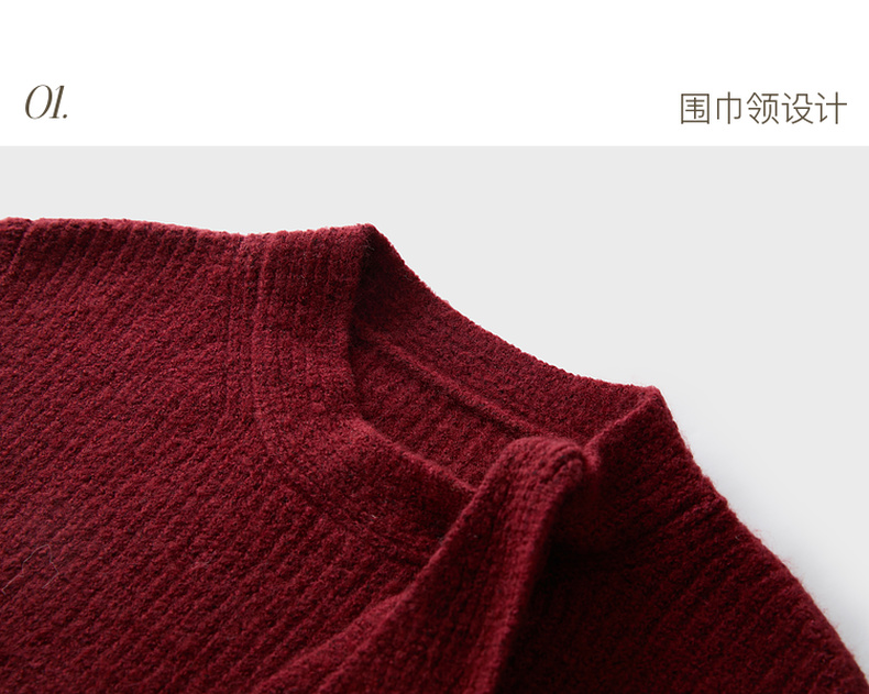三彩2025冬季新款围巾领针织衫宽松长袖套头毛衫休闲纯色百搭M