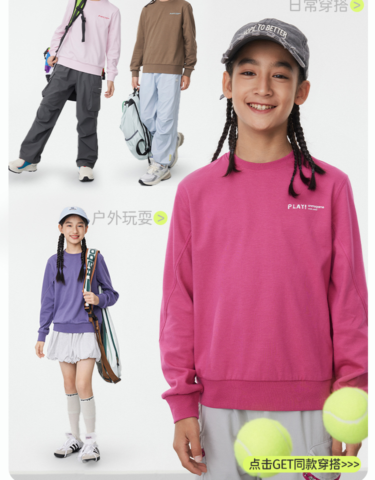 onmygame儿童专业运动品牌男女童款耐脏不易皱,柔软但不软踏
