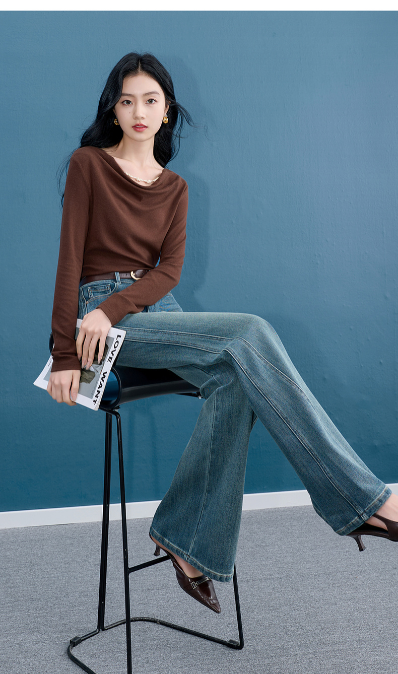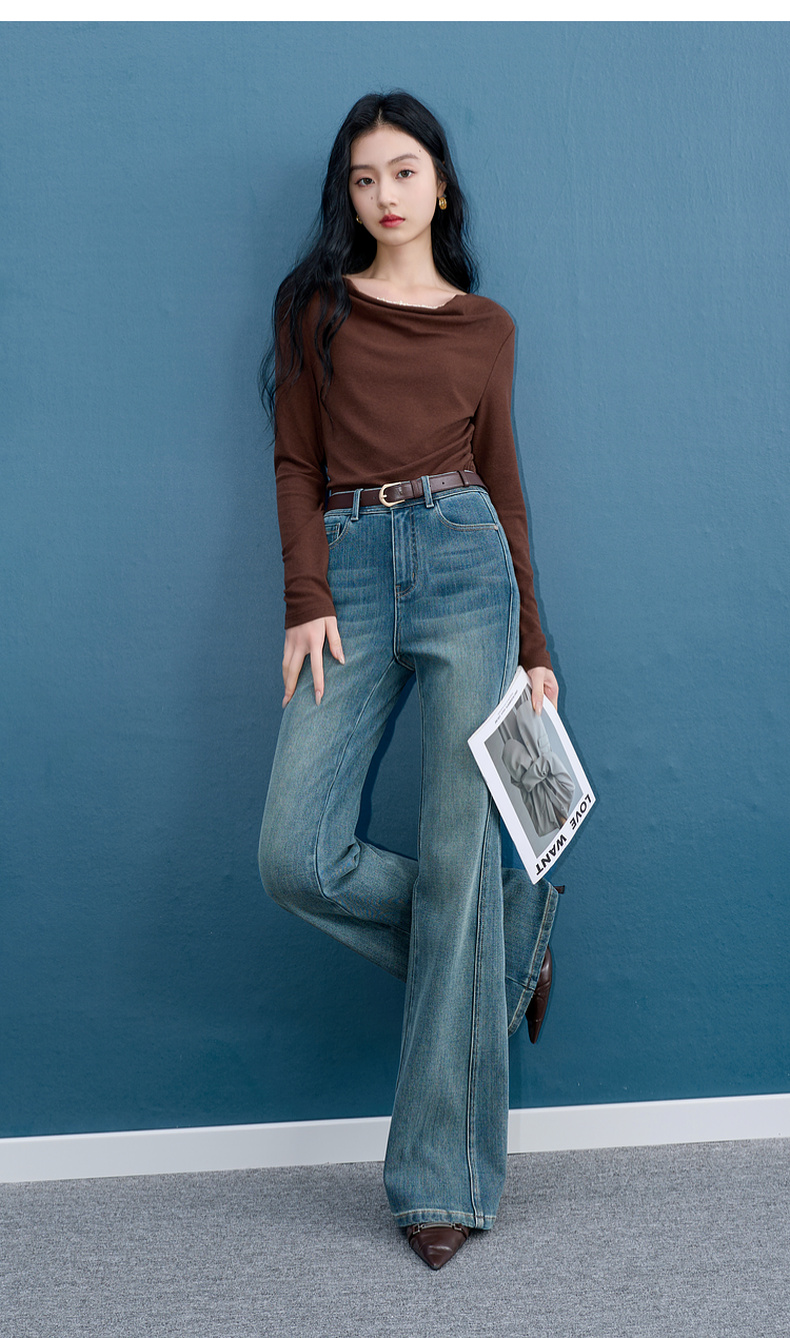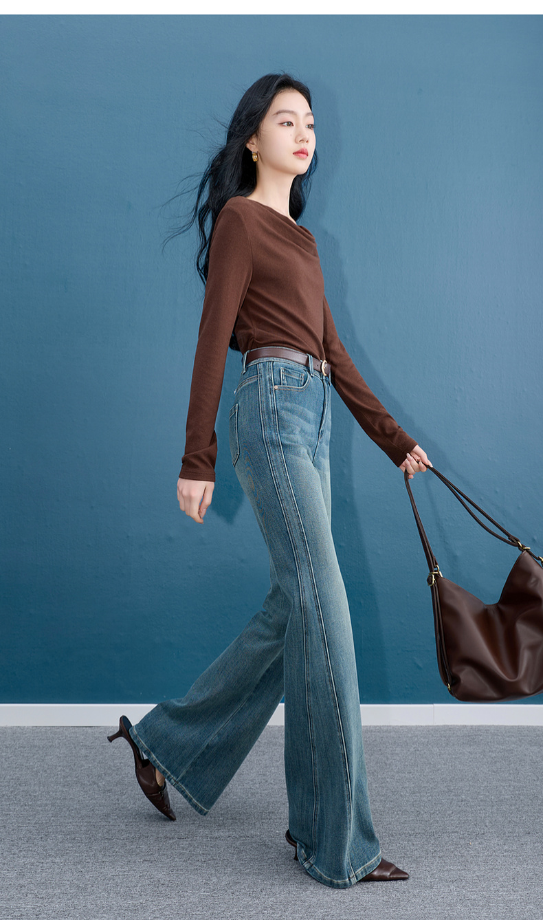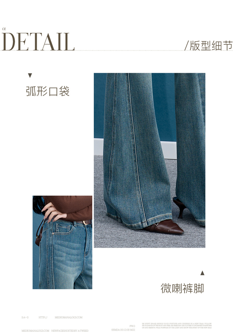 三彩2026春季新款高腰微喇牛仔裤水洗喇叭裤休闲长裤修身复古S
