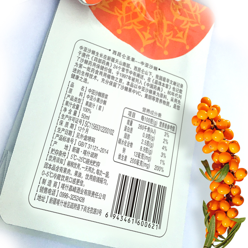【疆品南下 粤品北上】西域古秘中亚沙棘原浆50ml*10袋