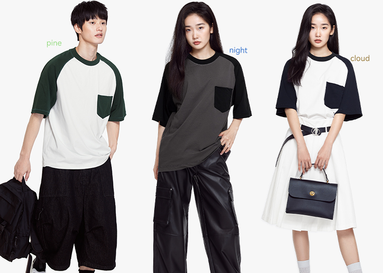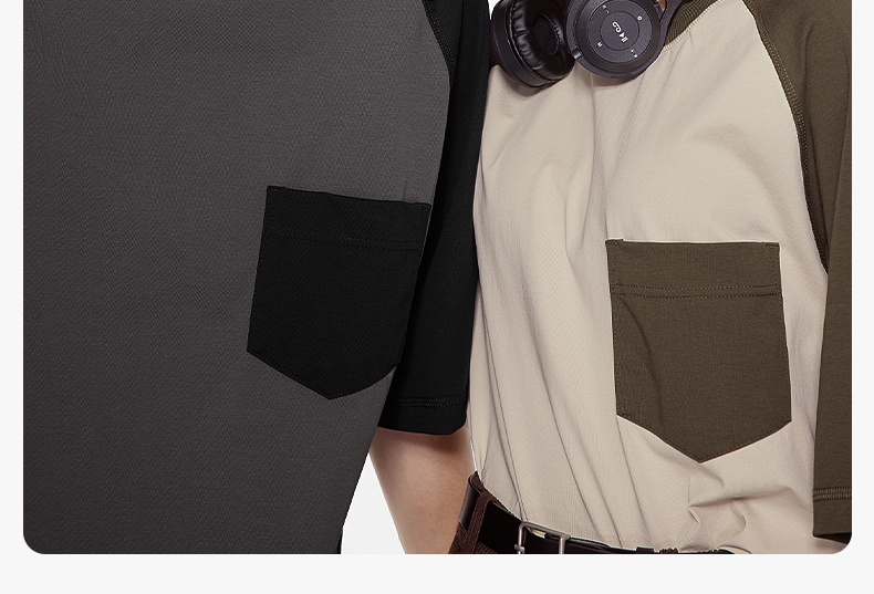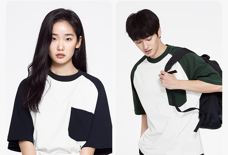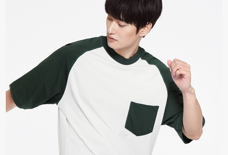 「棉的美学」纯棉长袖t恤~春秋宽松圆领内搭白色口袋打底衫情侣款