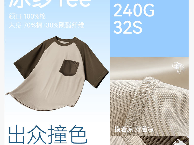 「棉的美学」凉感防晒圆领短袖女夏季简约宽松休闲显瘦情侣款T恤