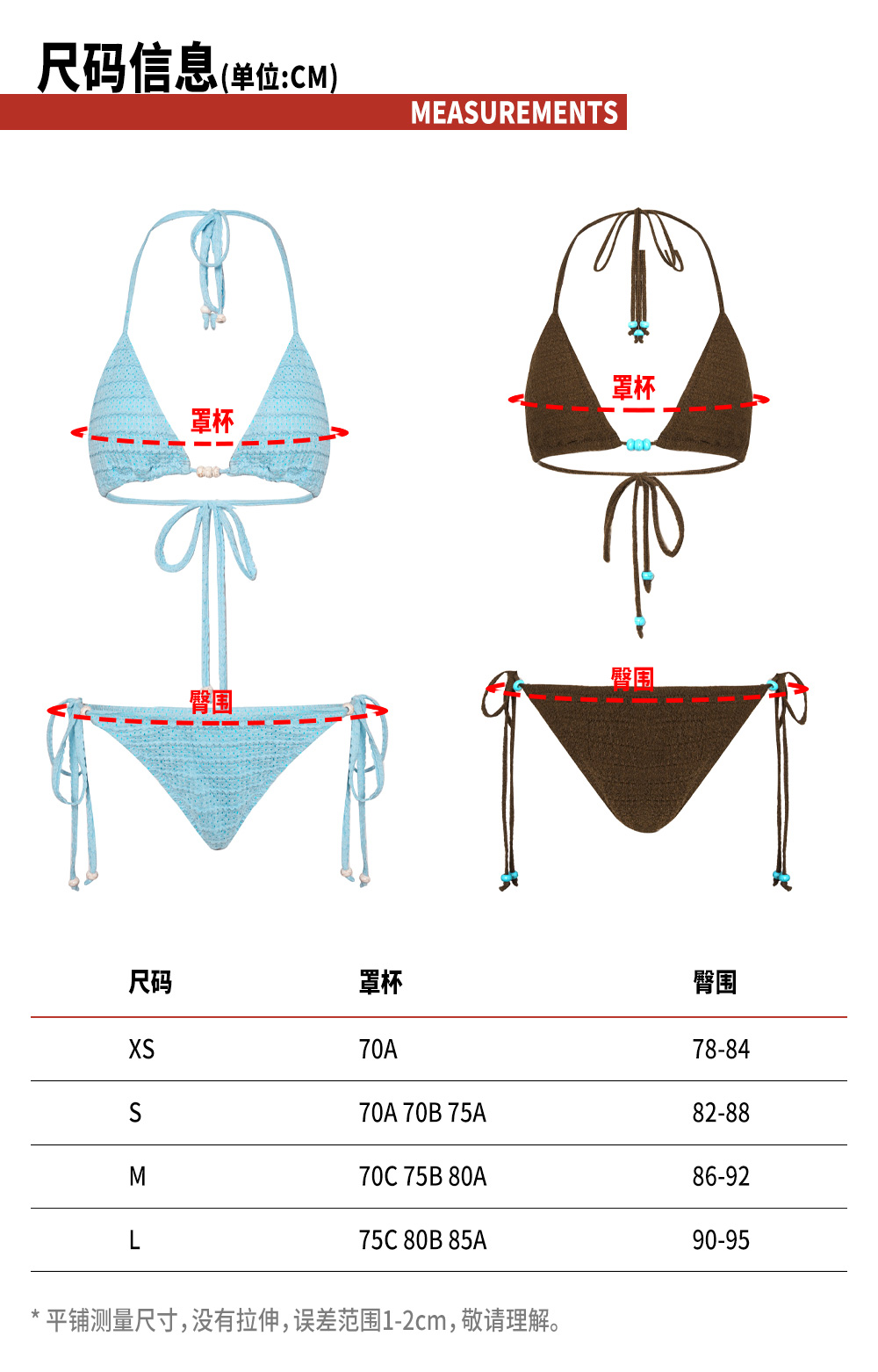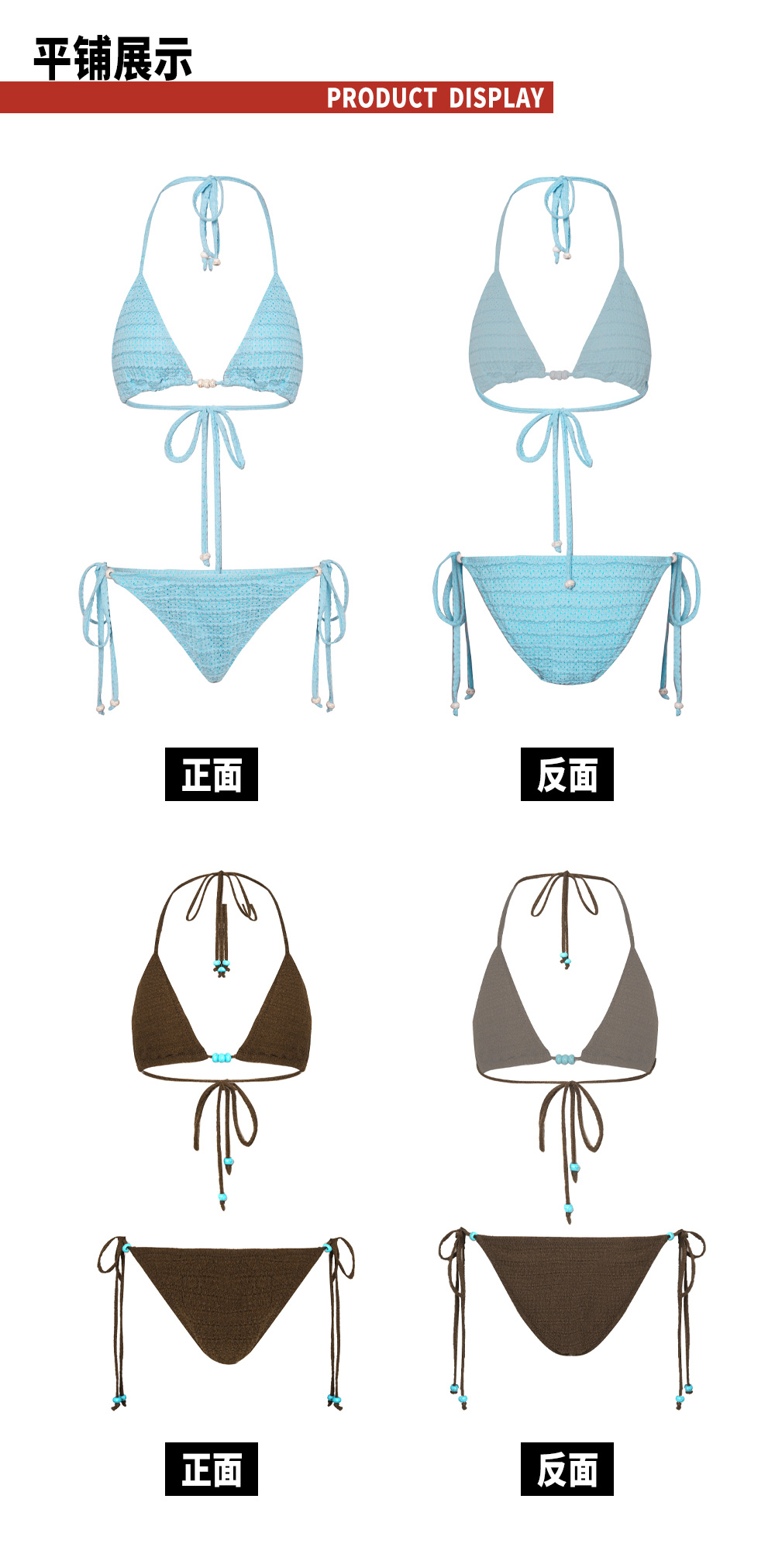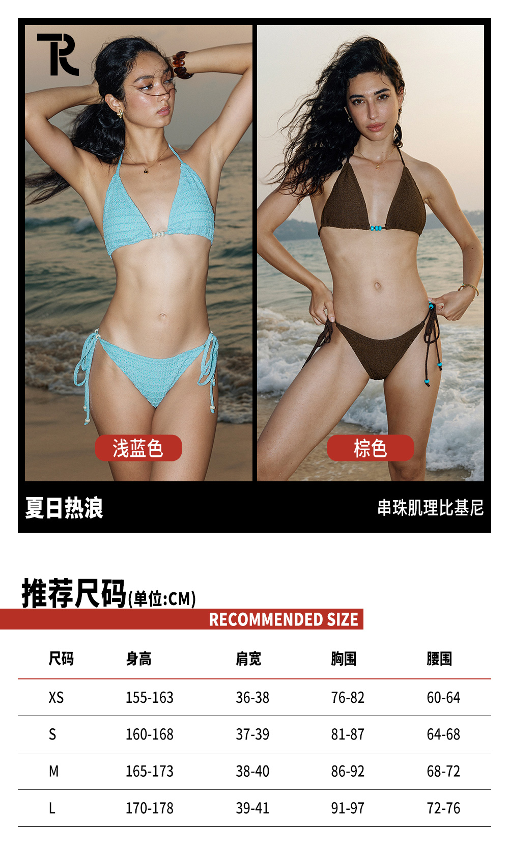 TR她热 夏日热浪 蓝色棕色度假挂脖系带撞色串珠系带比基尼