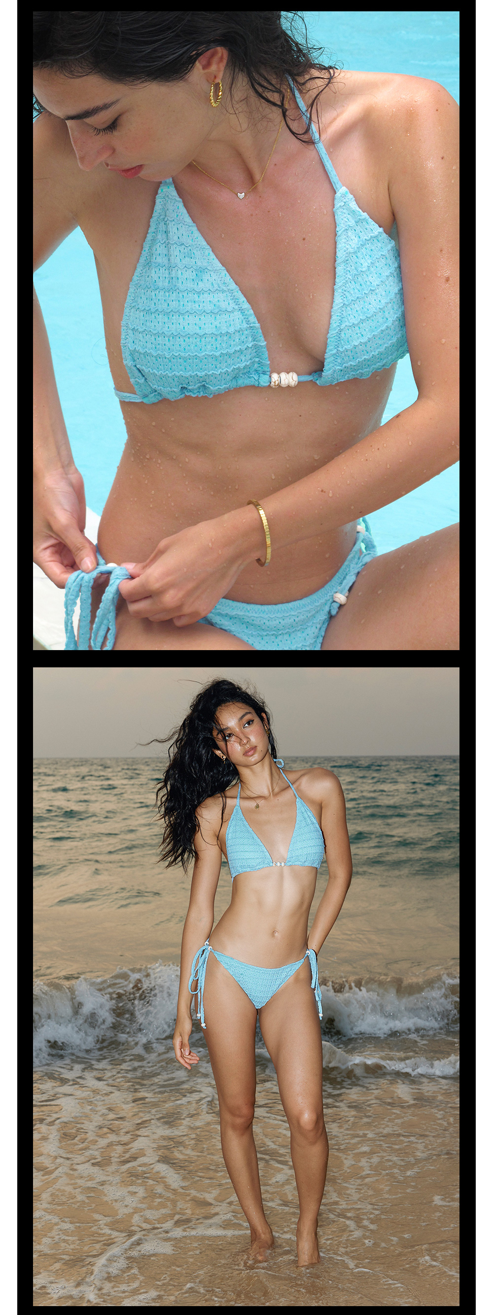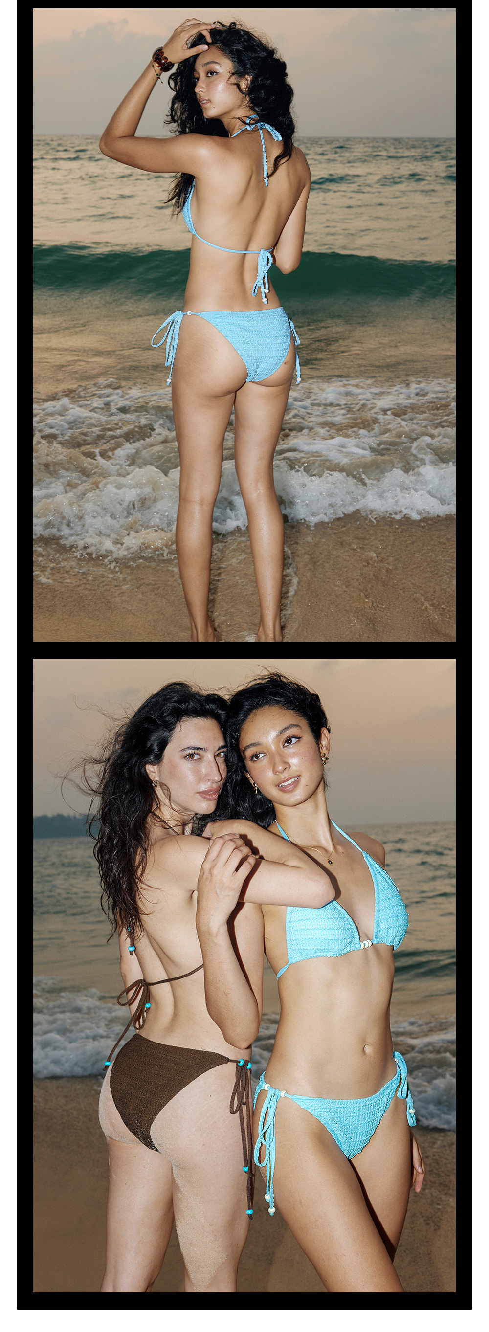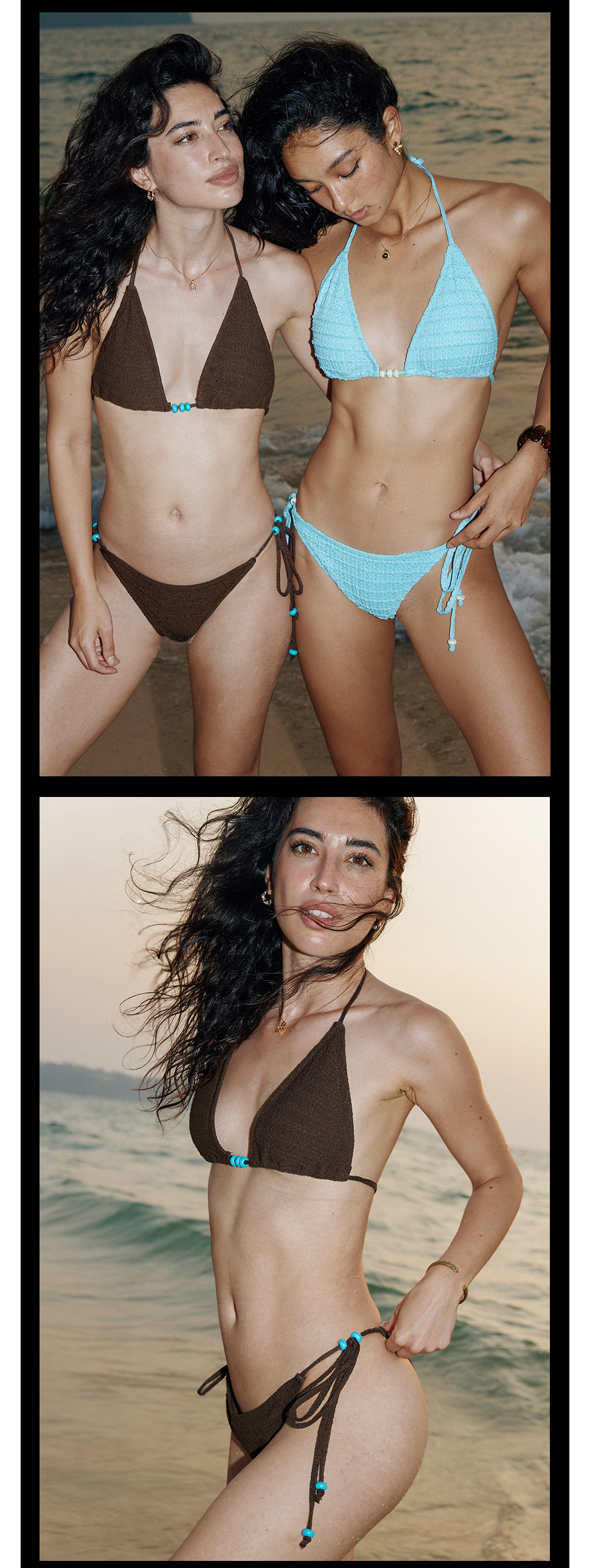 TR她热 夏日热浪 蓝色棕色度假挂脖系带撞色串珠系带比基尼