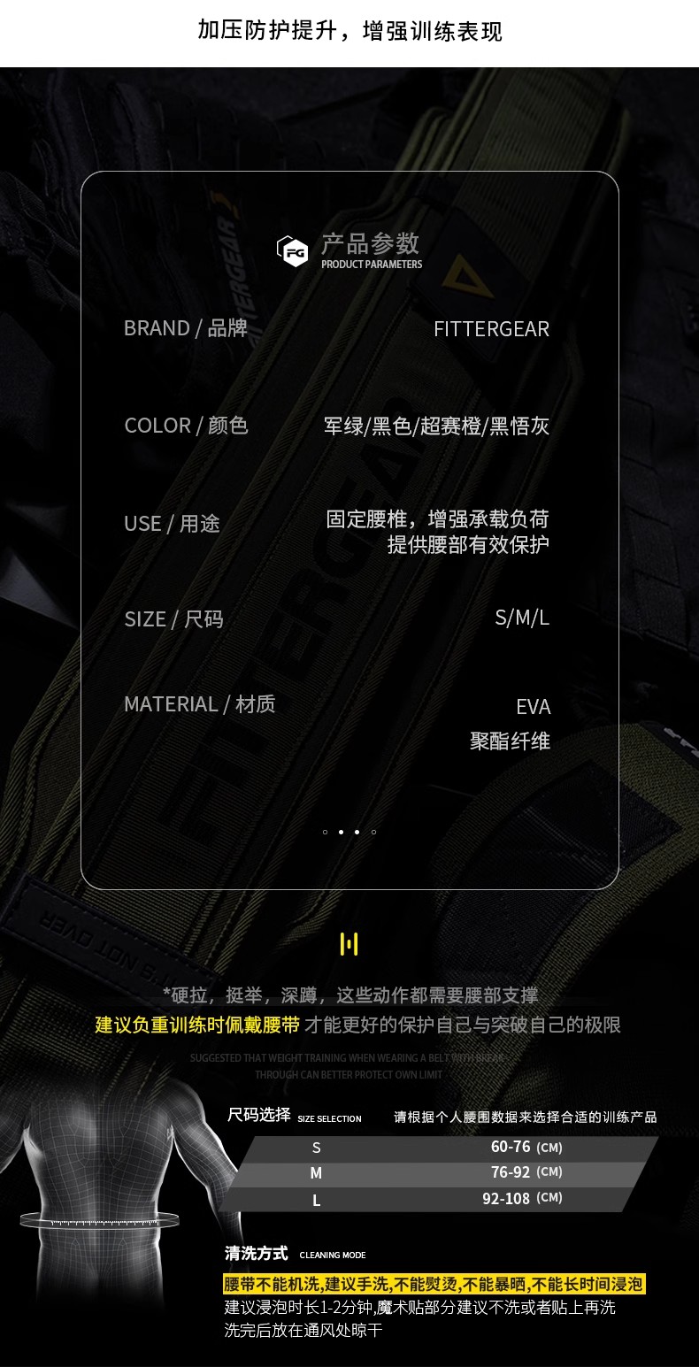 【执炼FitterGear】健身腰带健身深蹲运动护腰男女FG-P