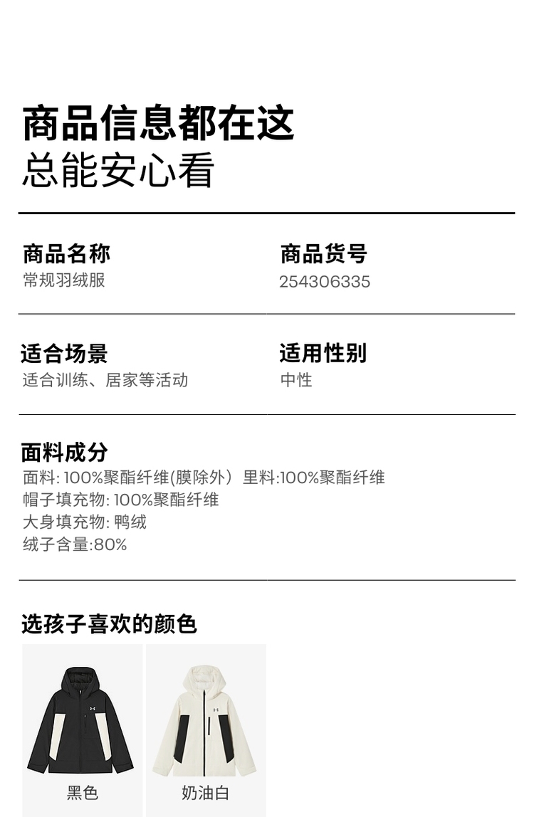 【12月-特惠福利】Under Armour安德玛儿童常规羽绒服254306335