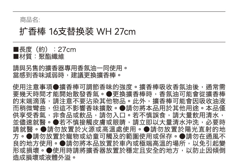 香水挥发香薰配件散香棒替换扩香棒16支替换装27cm
