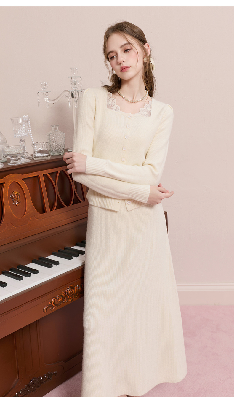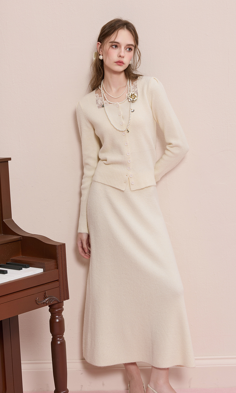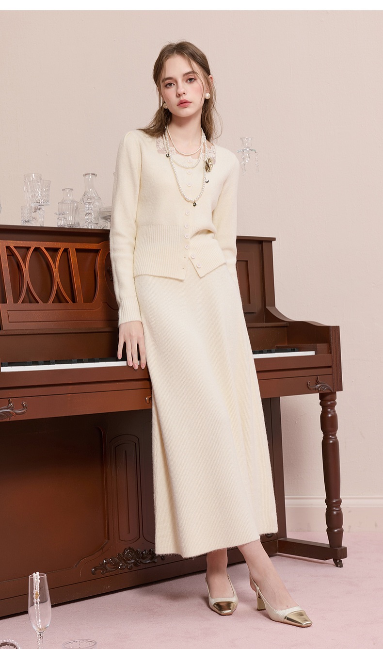 【社群秒杀】三彩2025冬季新款针织套装拼接毛衫上衣半身裙两件套M