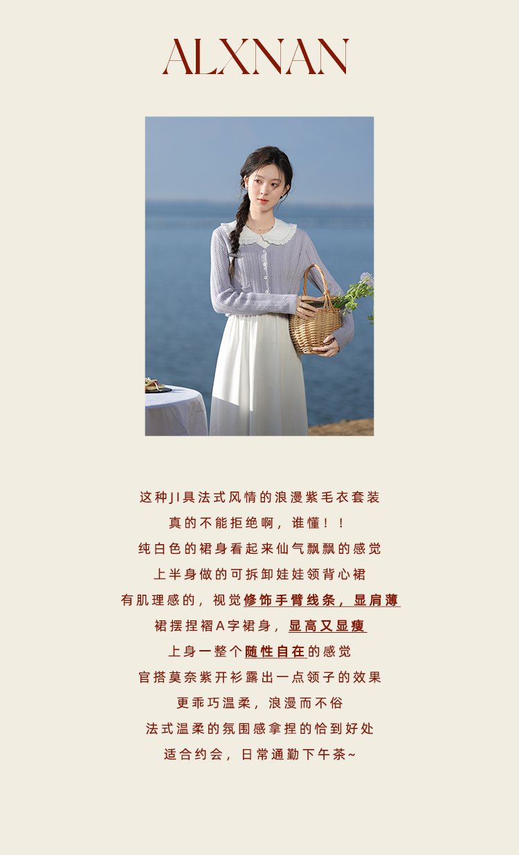 【65折秒杀】鹿向南《浪漫迷离》气质淑女针织衫女法式背心裙L336206-2