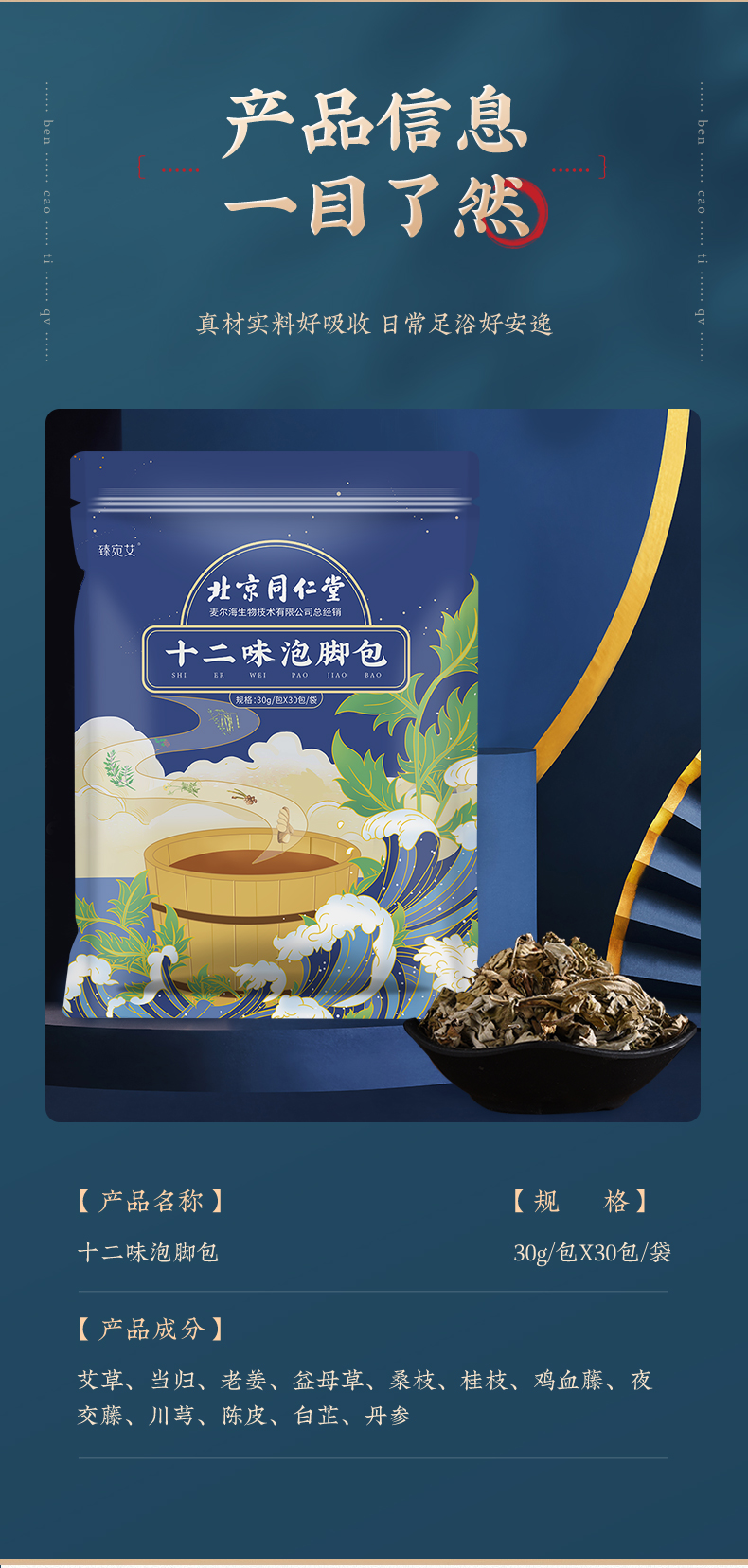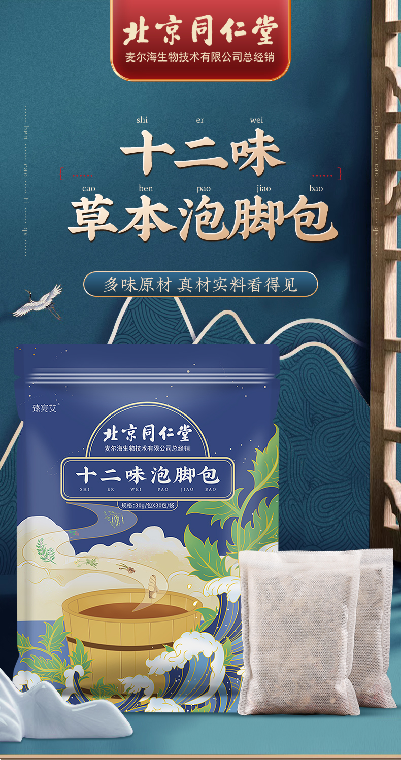 【创办于1669年!北京同仁堂十二味泡脚包】地道原材泡脚药包足浴宝足浴包泡脚粉足浴粉泡脚丸30克*30包