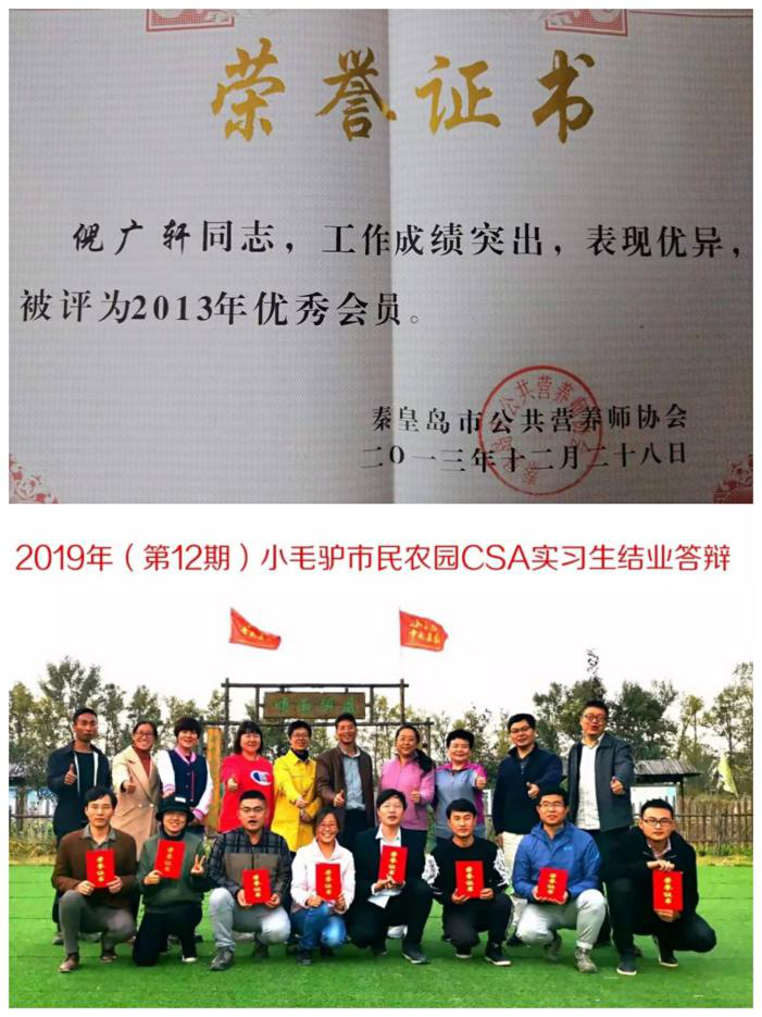 2011—2015年加入秦皇岛市公共营养师协会(现秦皇岛市营养学会)成为会员,2013年被评为“优秀会员”。