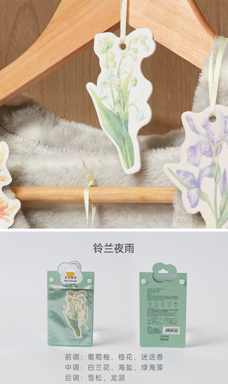 家用卧室橱柜车载 花漾扩香卡 2片装 兰陵郁香/爱丽丝鸢尾花/金盏银台/铃兰夜雨