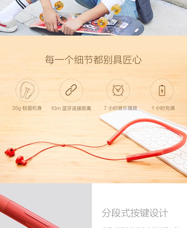 Xiaomi/小米 青春版 蓝牙项圈耳机 挂脖式运动半入耳式耳机