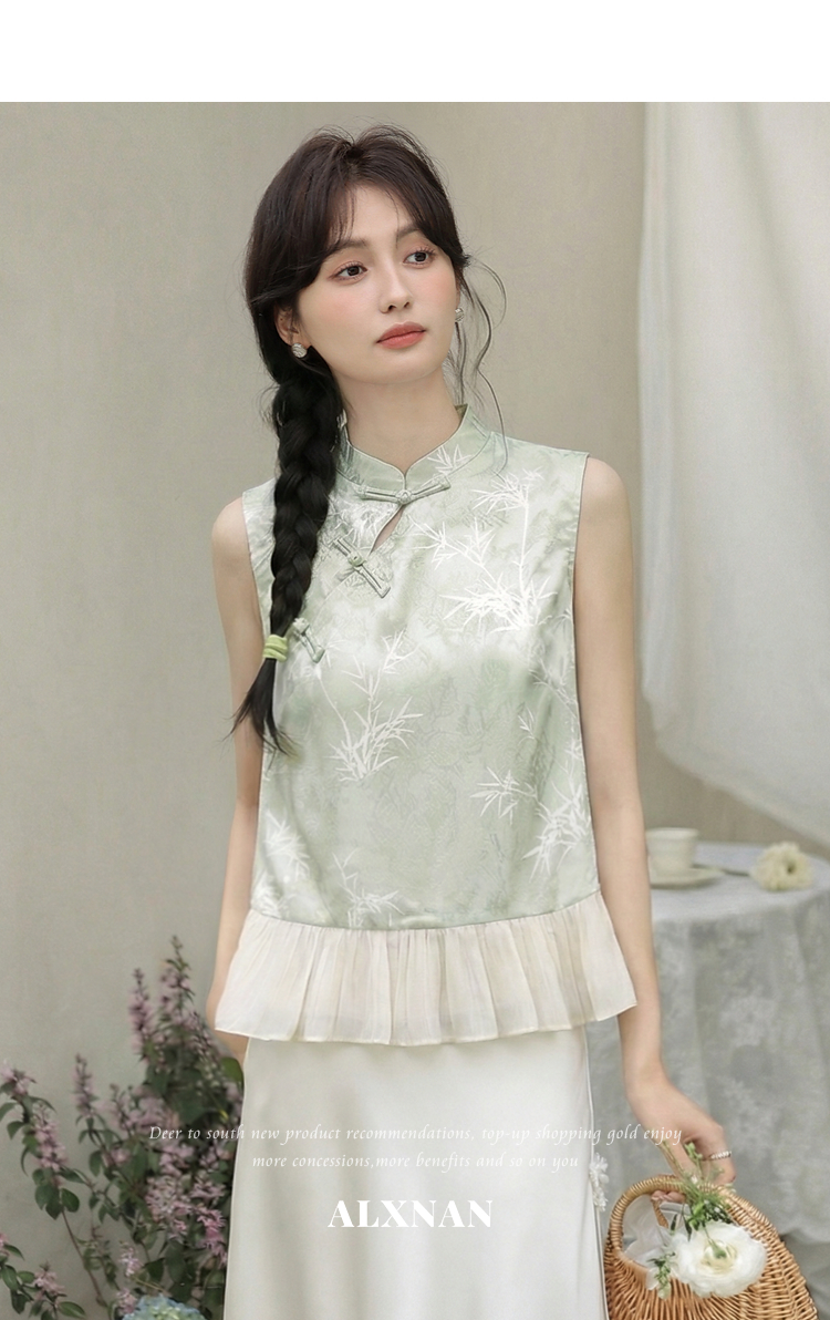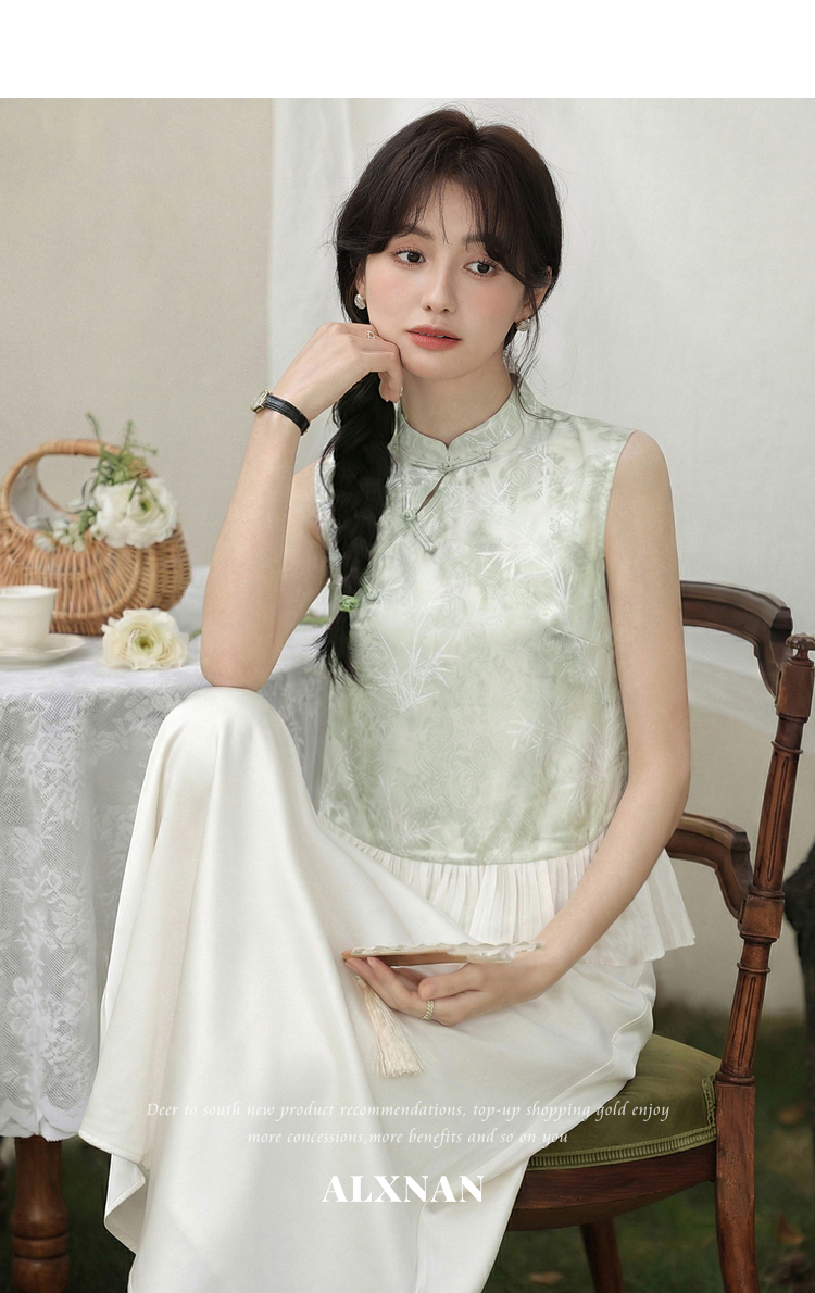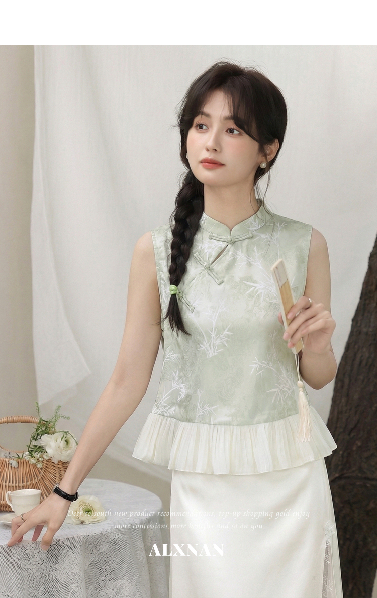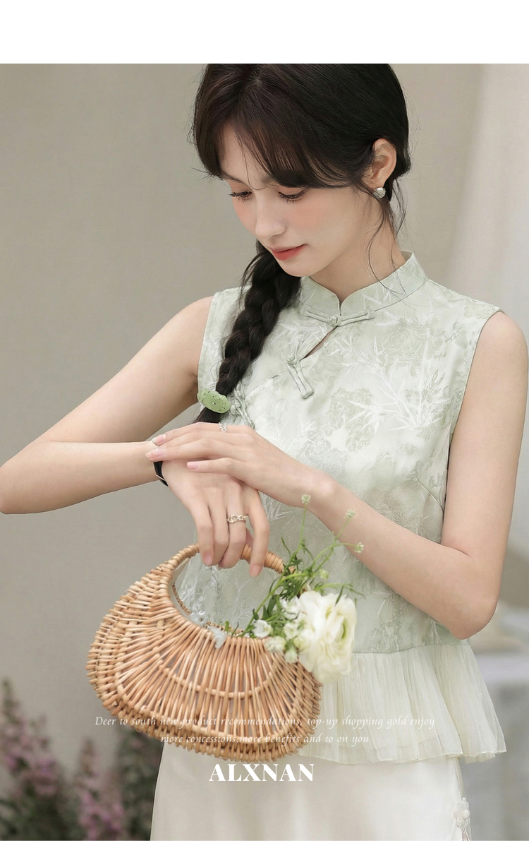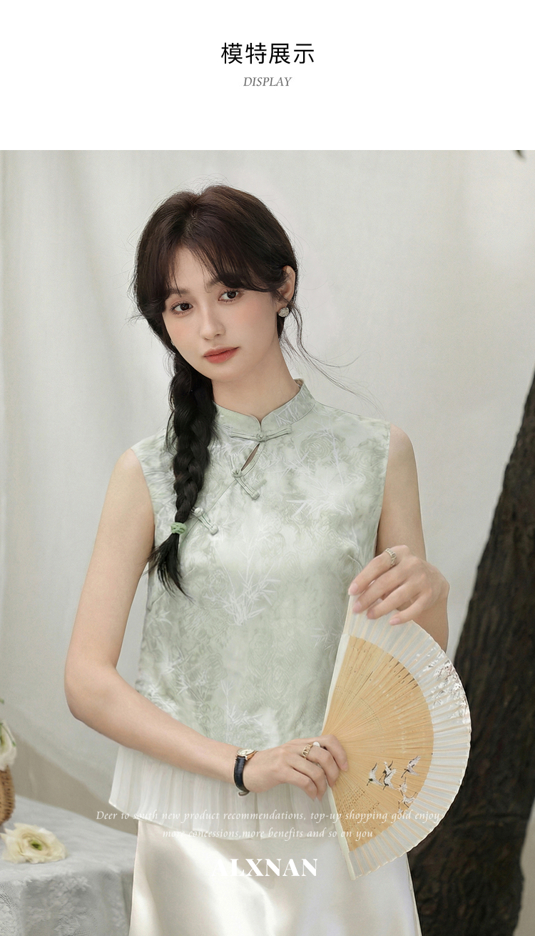 鹿向南「青衫烟雨」绿色新中式背心内搭女夏季漂亮高级感吊带上衣