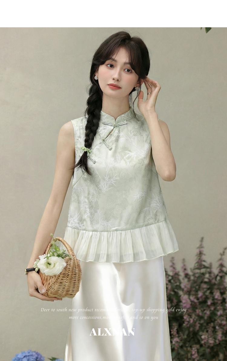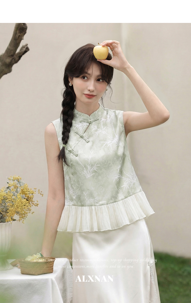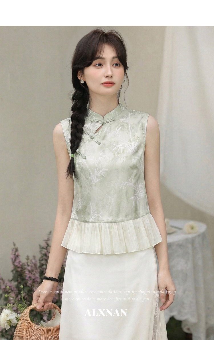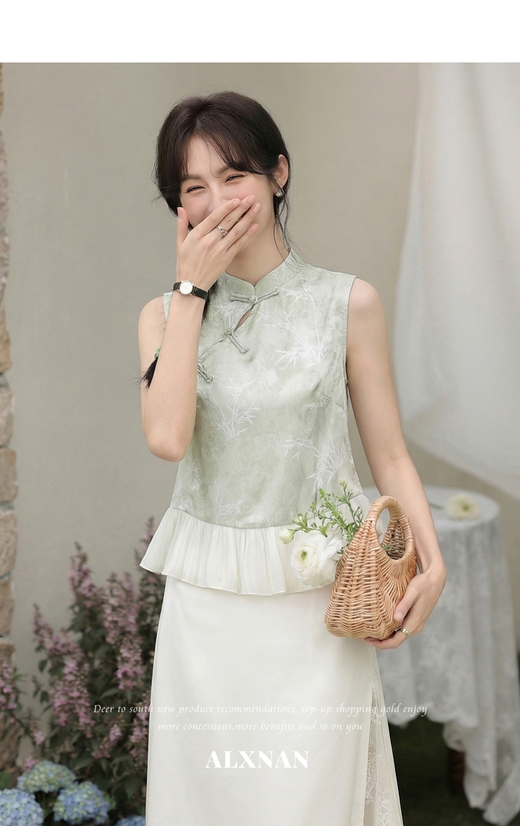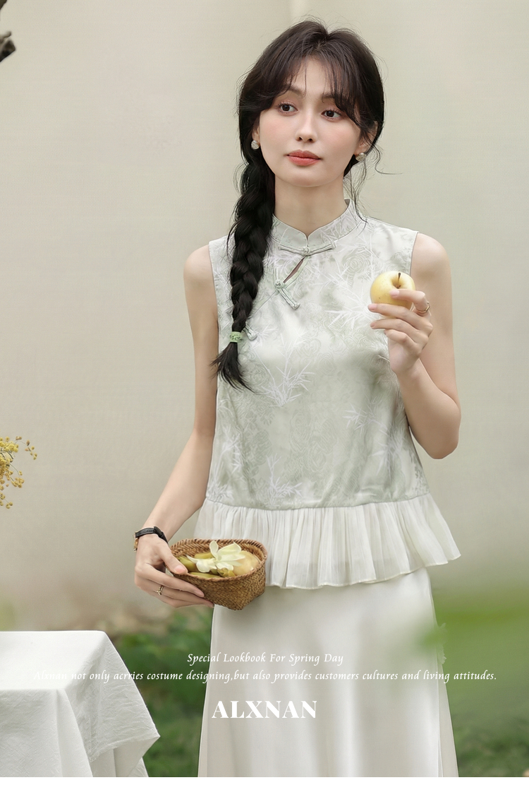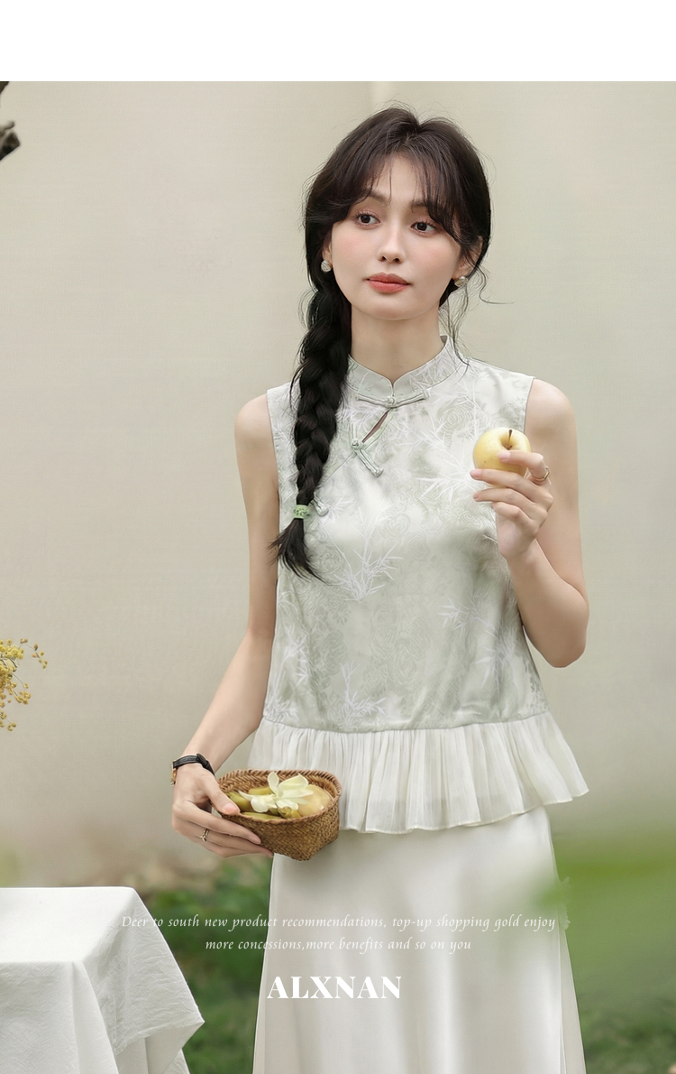 鹿向南「青衫烟雨」绿色新中式背心内搭女夏季漂亮高级感吊带上衣