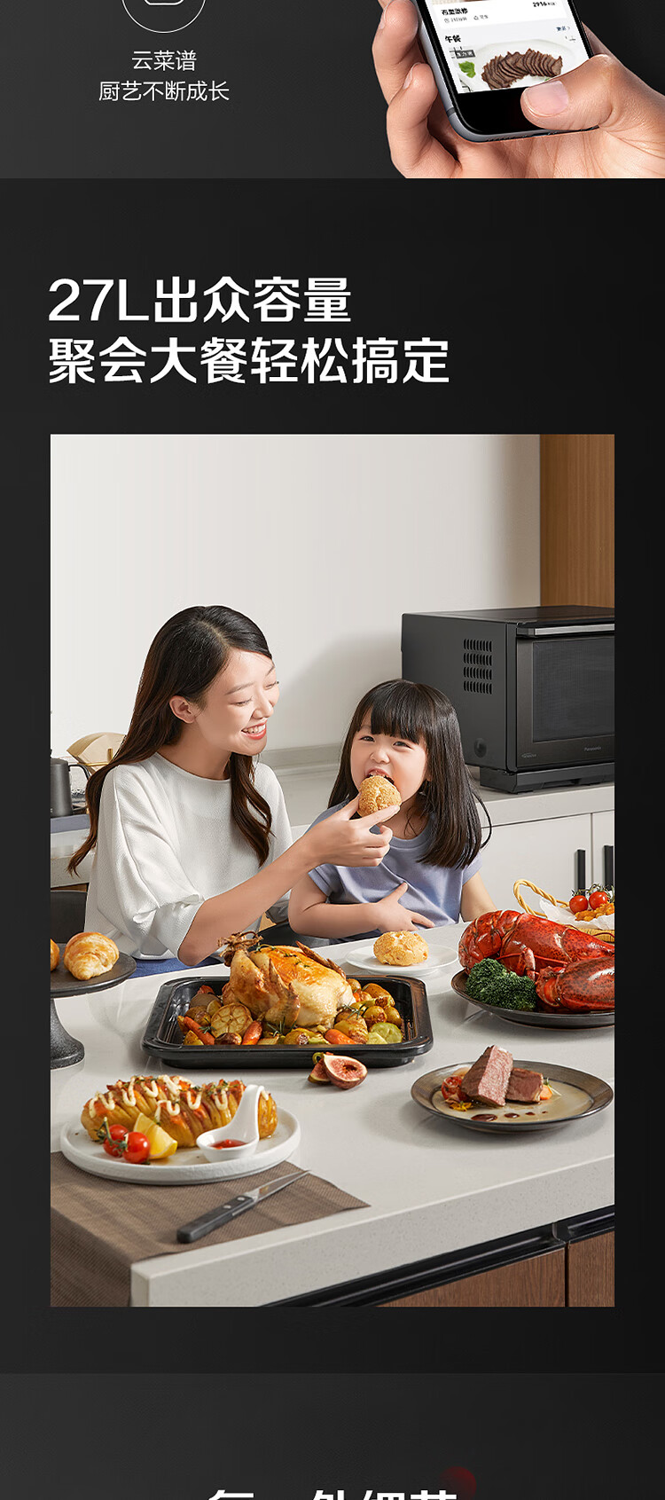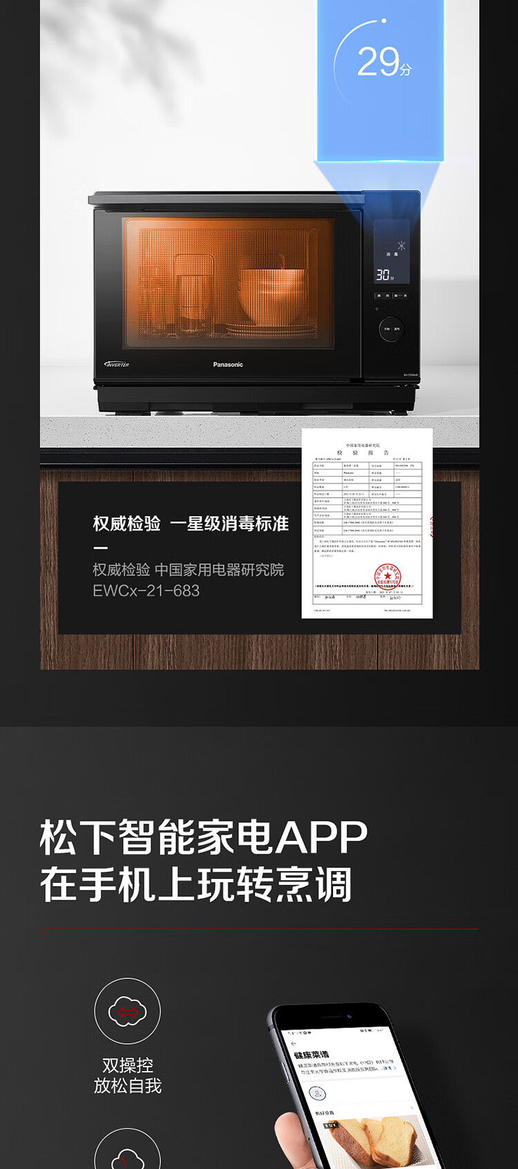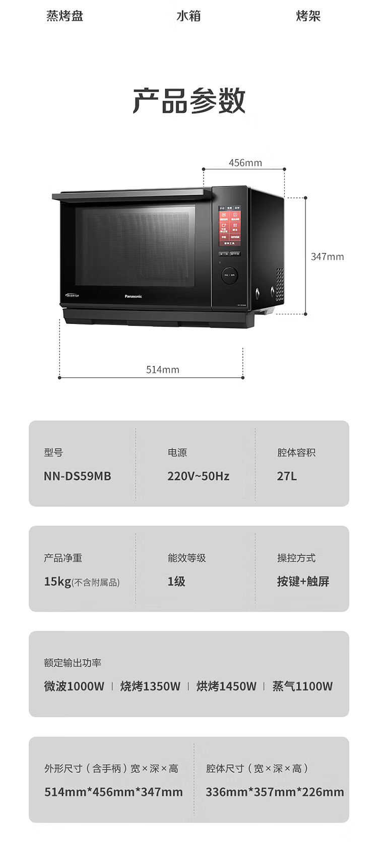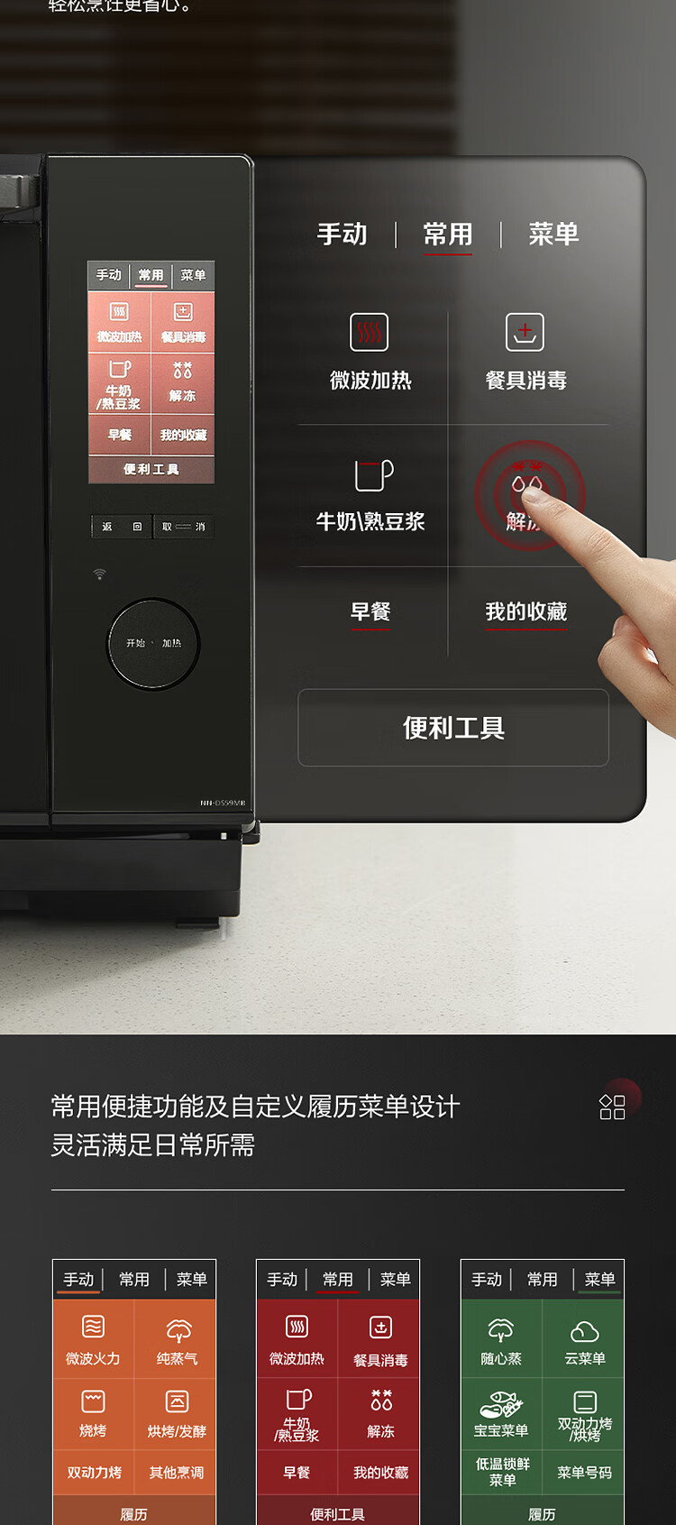 松下 (Panasonic)智能家用多功能微波炉烤箱23升自动菜单解冻微波炉烤箱一体机 NN-DS59MBXPE