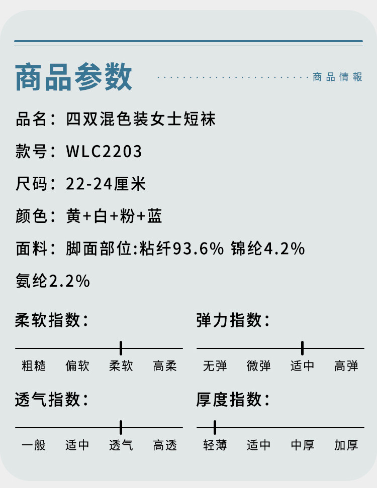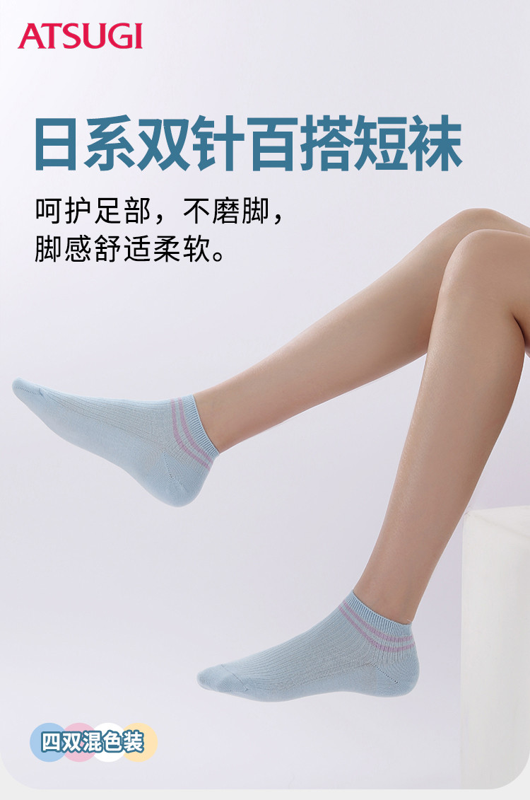 厚木Atsugi四双装混色女士春秋款短袜基础款纯色棉袜INS日系短袜百搭 WLC2203