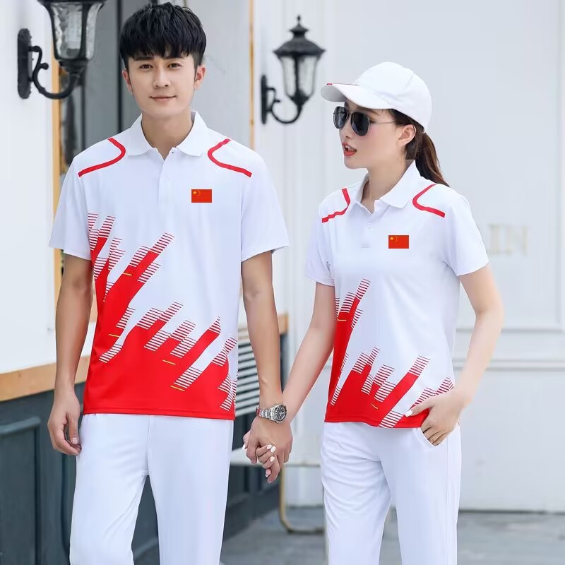 中国队运动服套装夏季短袖T恤男女团体训练服队服polo