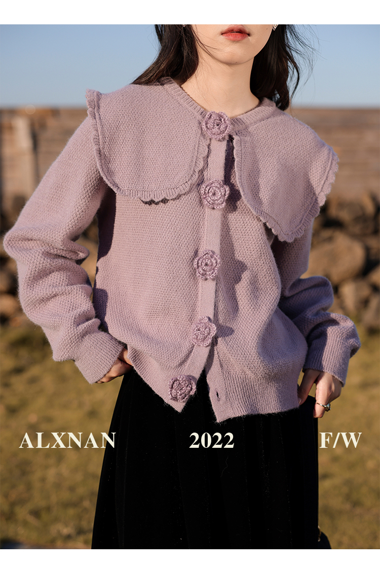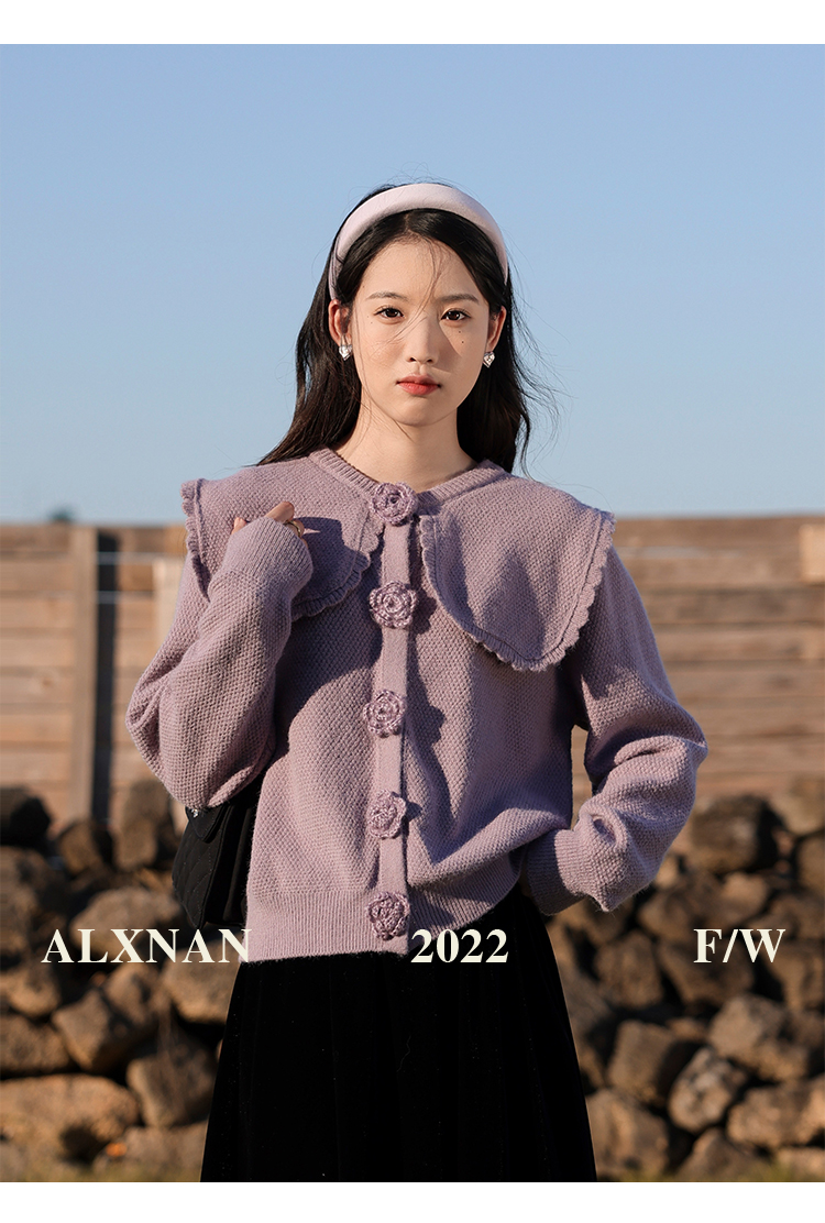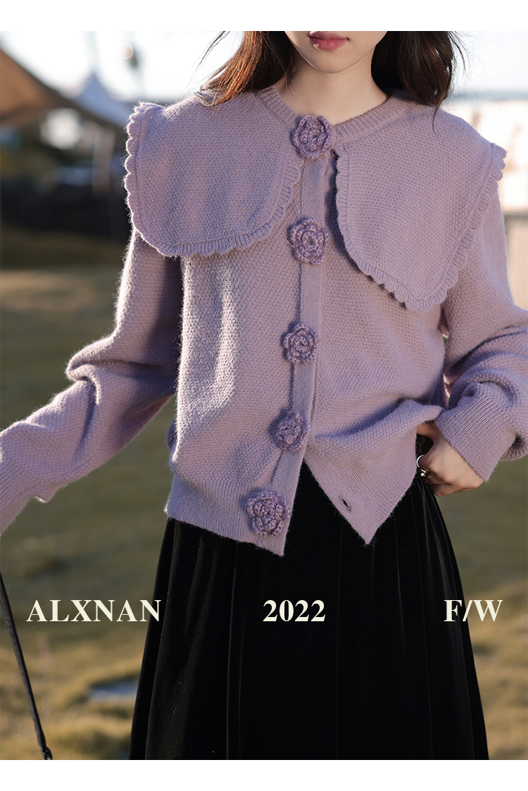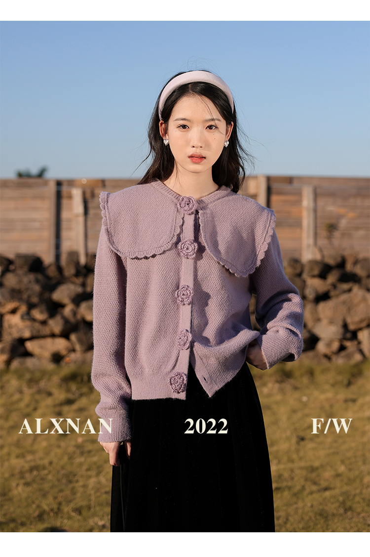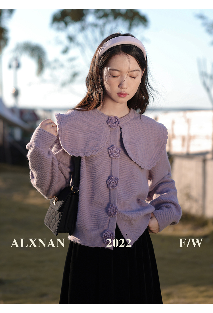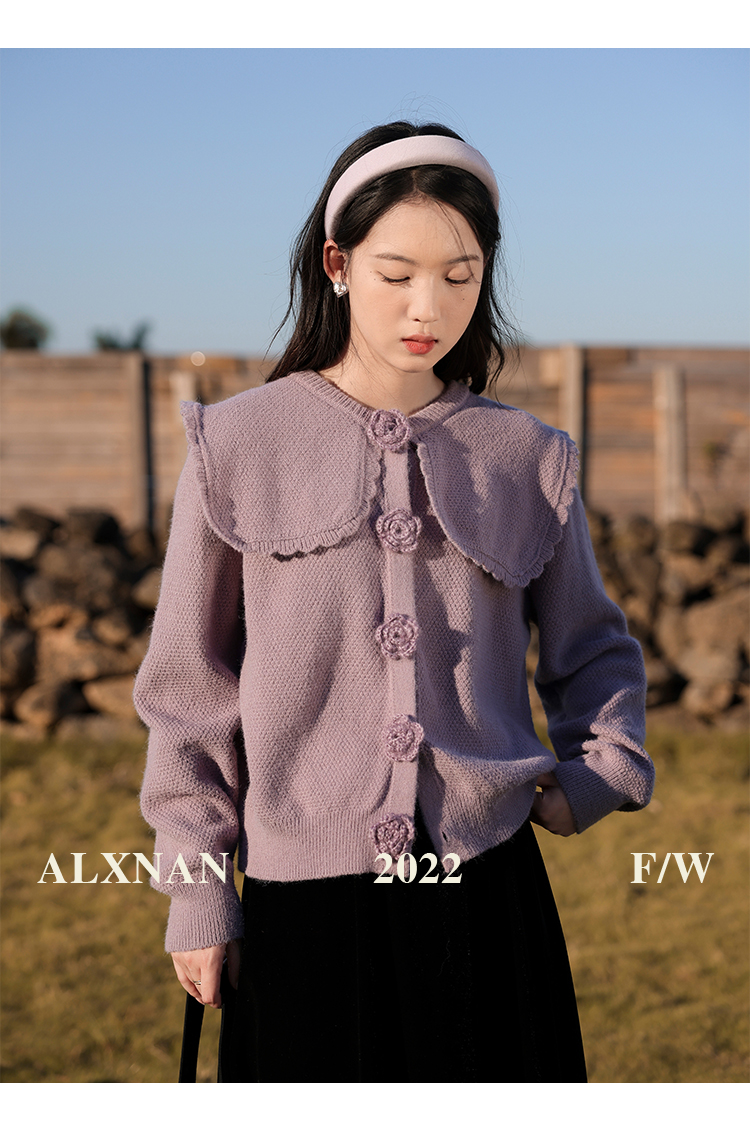 鹿向南「芋芋奶冰」法式紫色娃娃领针织毛衣女2025秋冬季开衫上衣