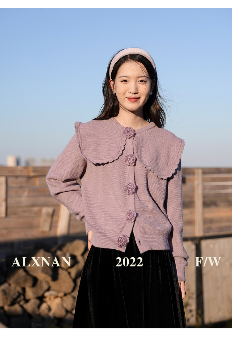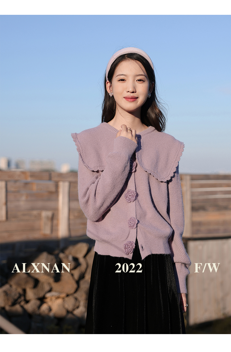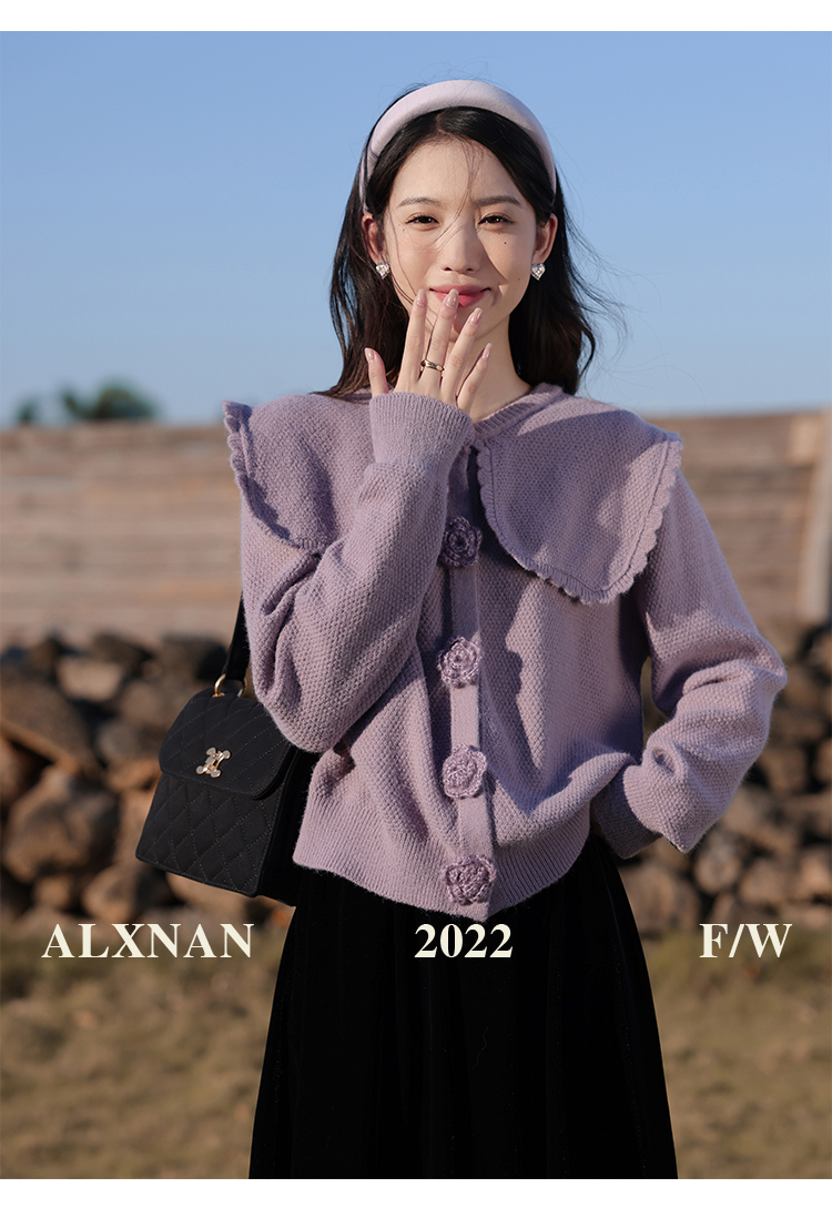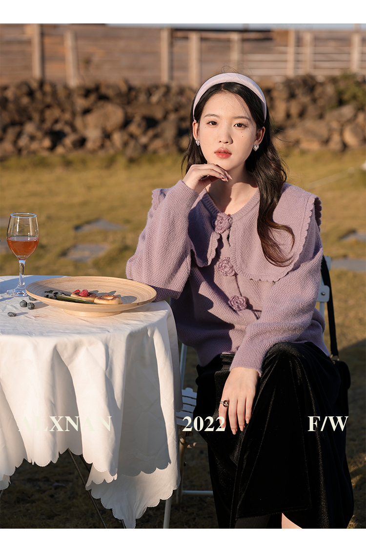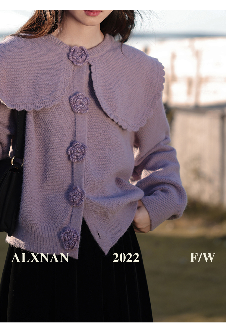 鹿向南「芋芋奶冰」法式紫色娃娃领针织毛衣女2025秋冬季开衫上衣
