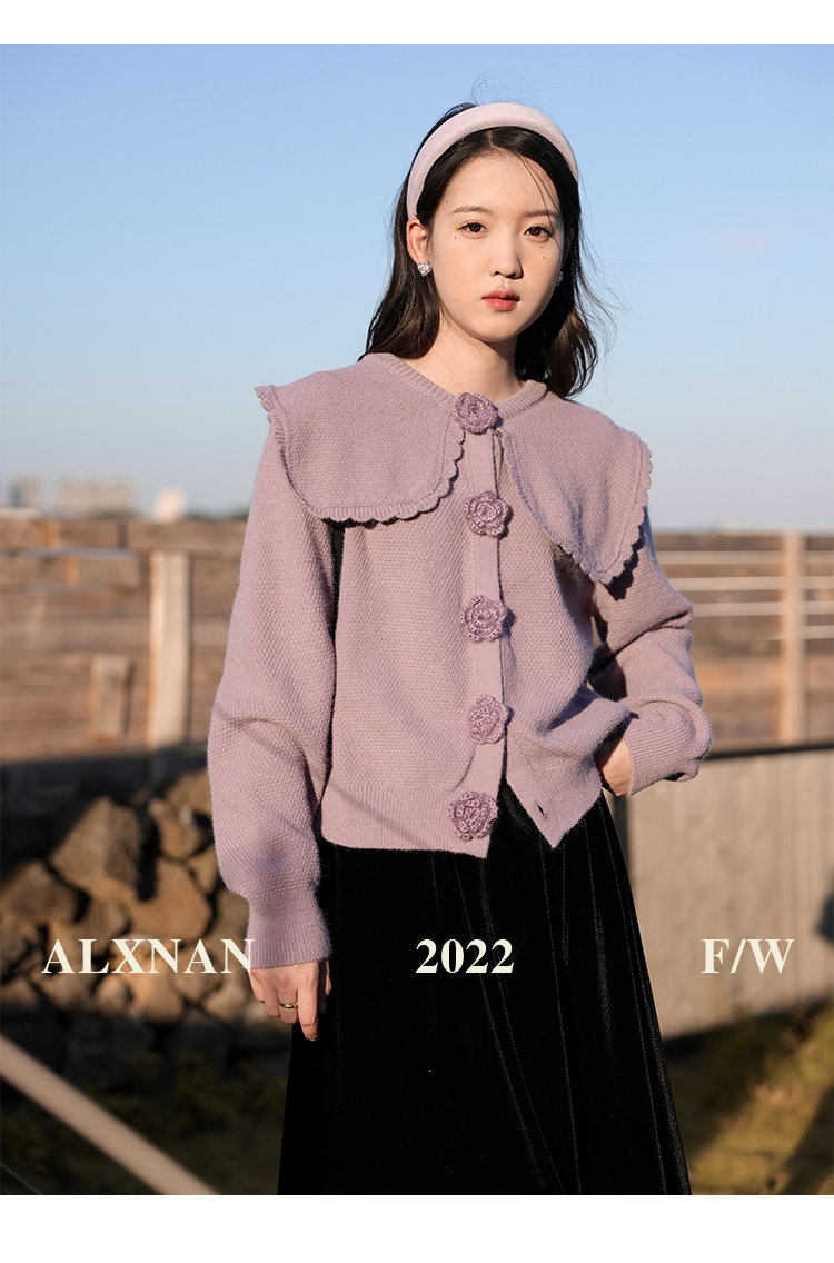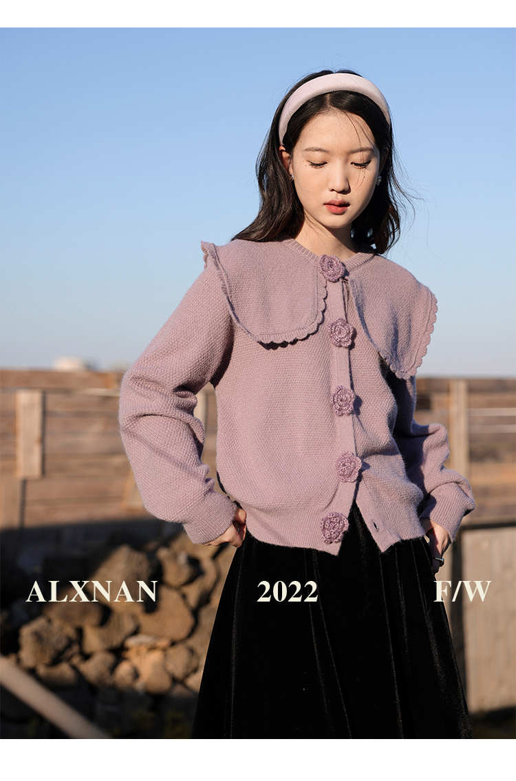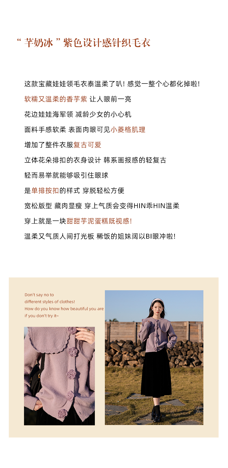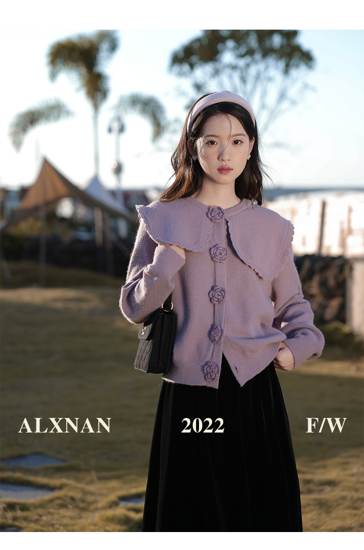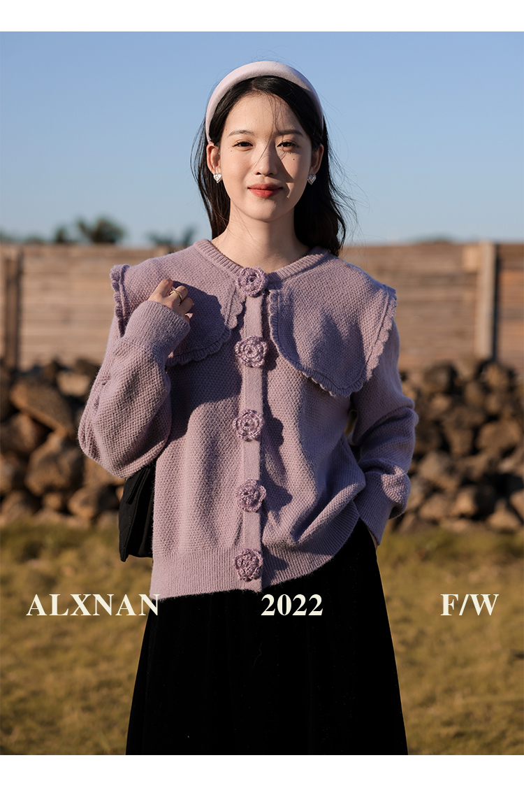 鹿向南「芋芋奶冰」法式紫色娃娃领针织毛衣女2025秋冬季开衫上衣