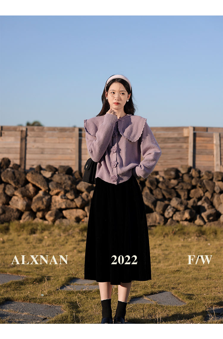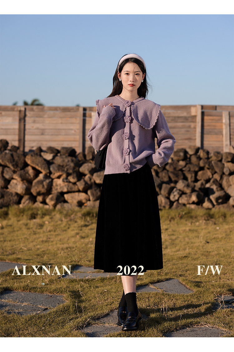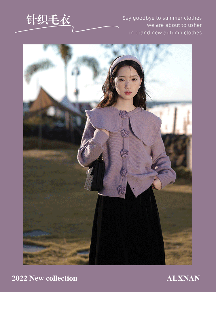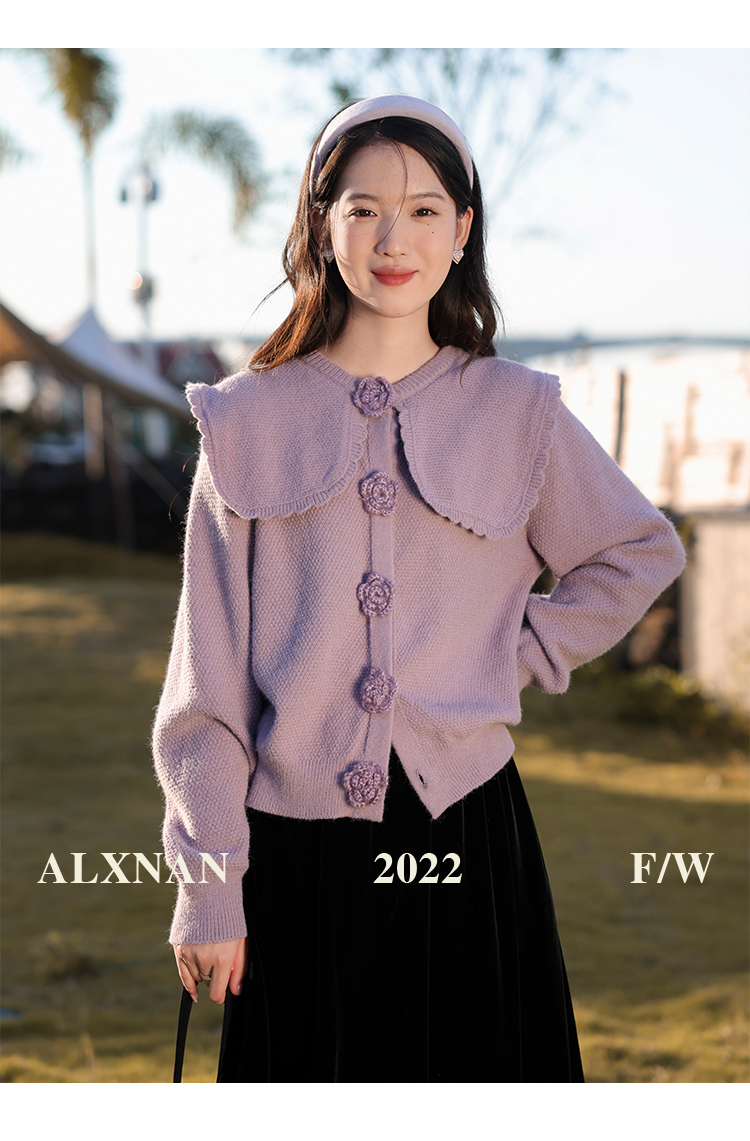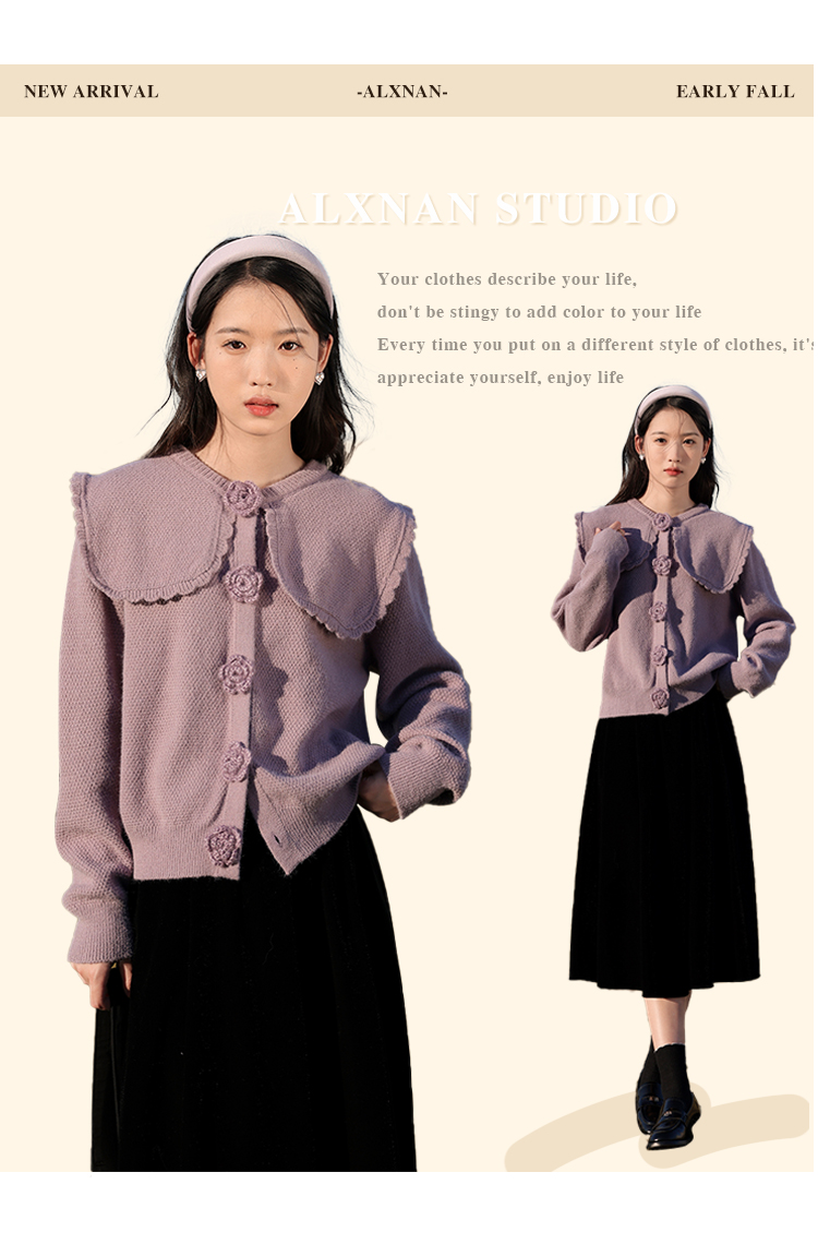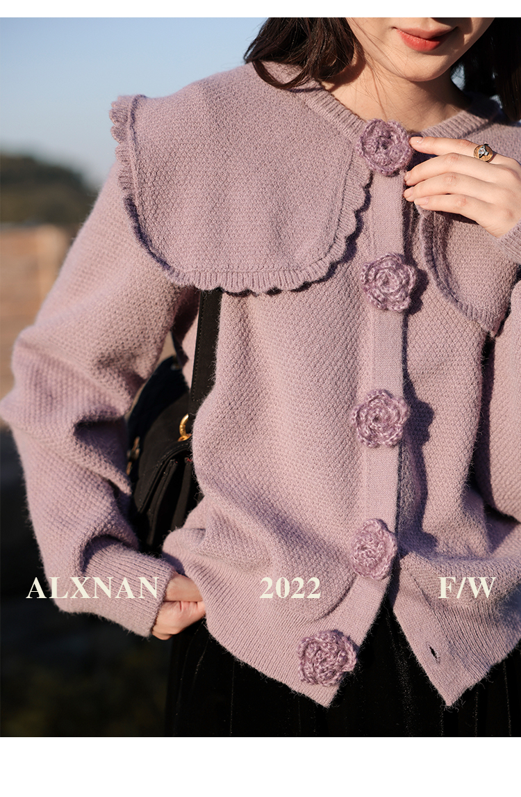 鹿向南「芋芋奶冰」法式紫色娃娃领针织毛衣女2025秋冬季开衫上衣